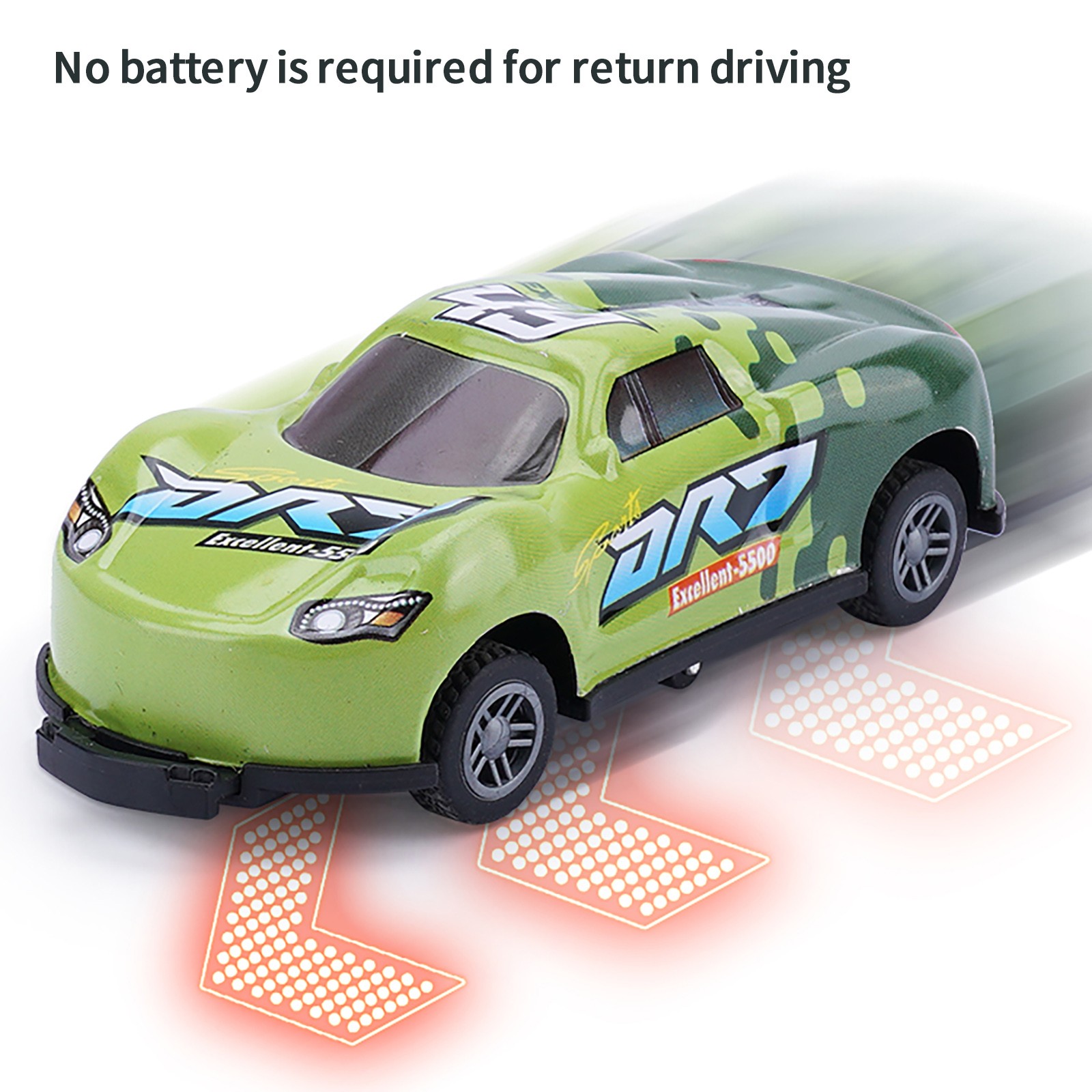 Батарея не требуется. Перетащите каскадер на определенное расстояние, а затем отправьте его, и он автоматически будет двигаться вперед.