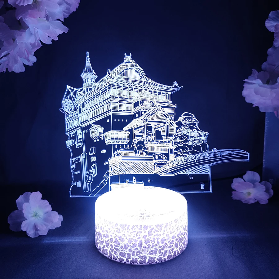 Yubaba's Bathhouse светодиодный светильник в стиле аниме знаменитое место 3D Голограмма освещение искусство работа женская Спальня украшение манга Chihiro