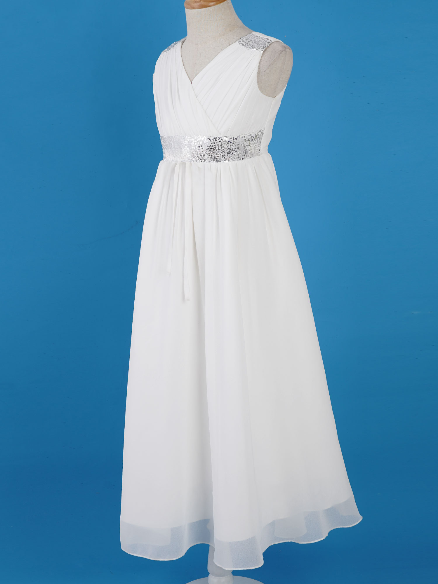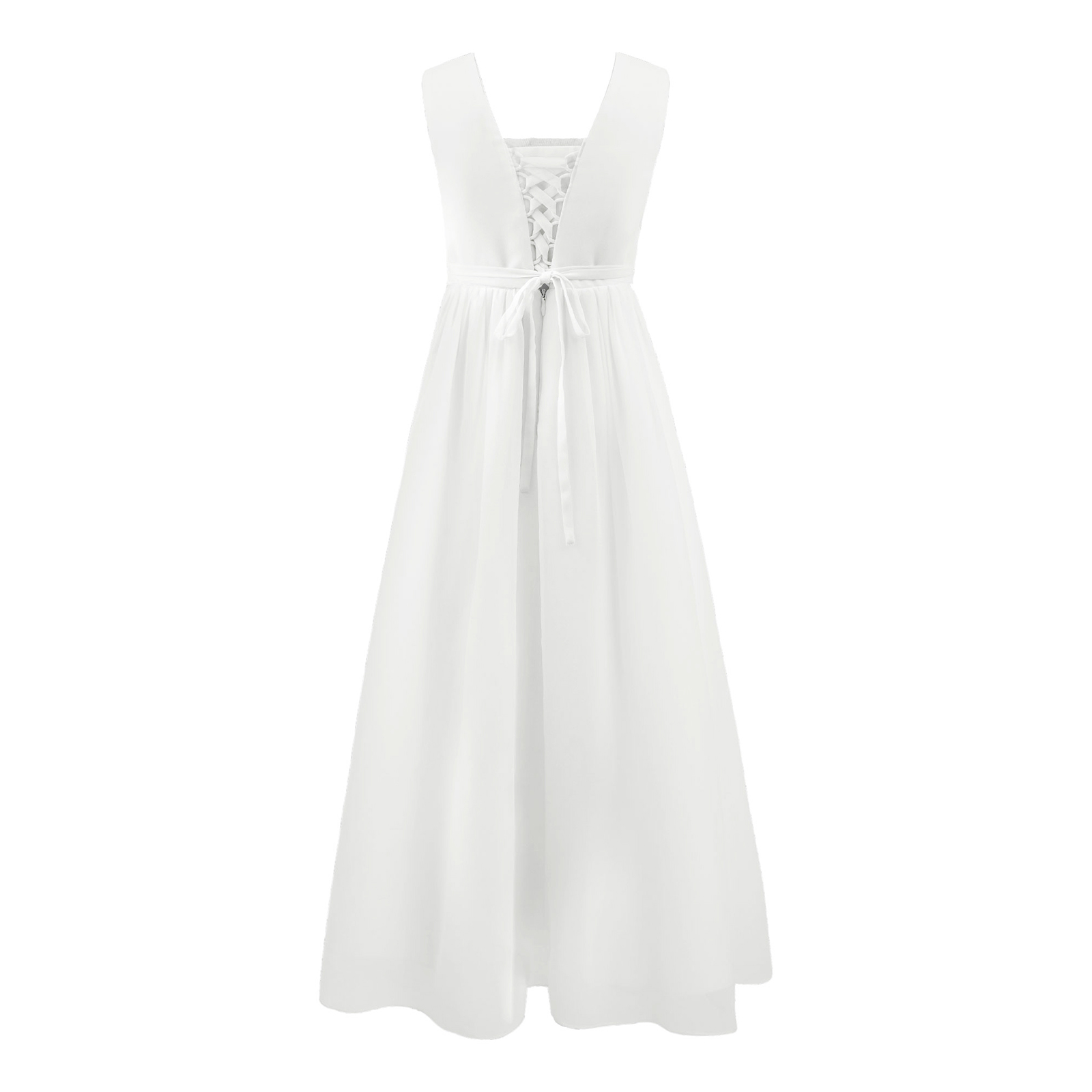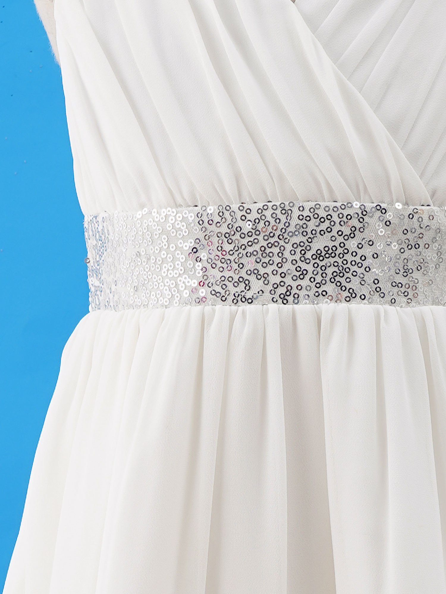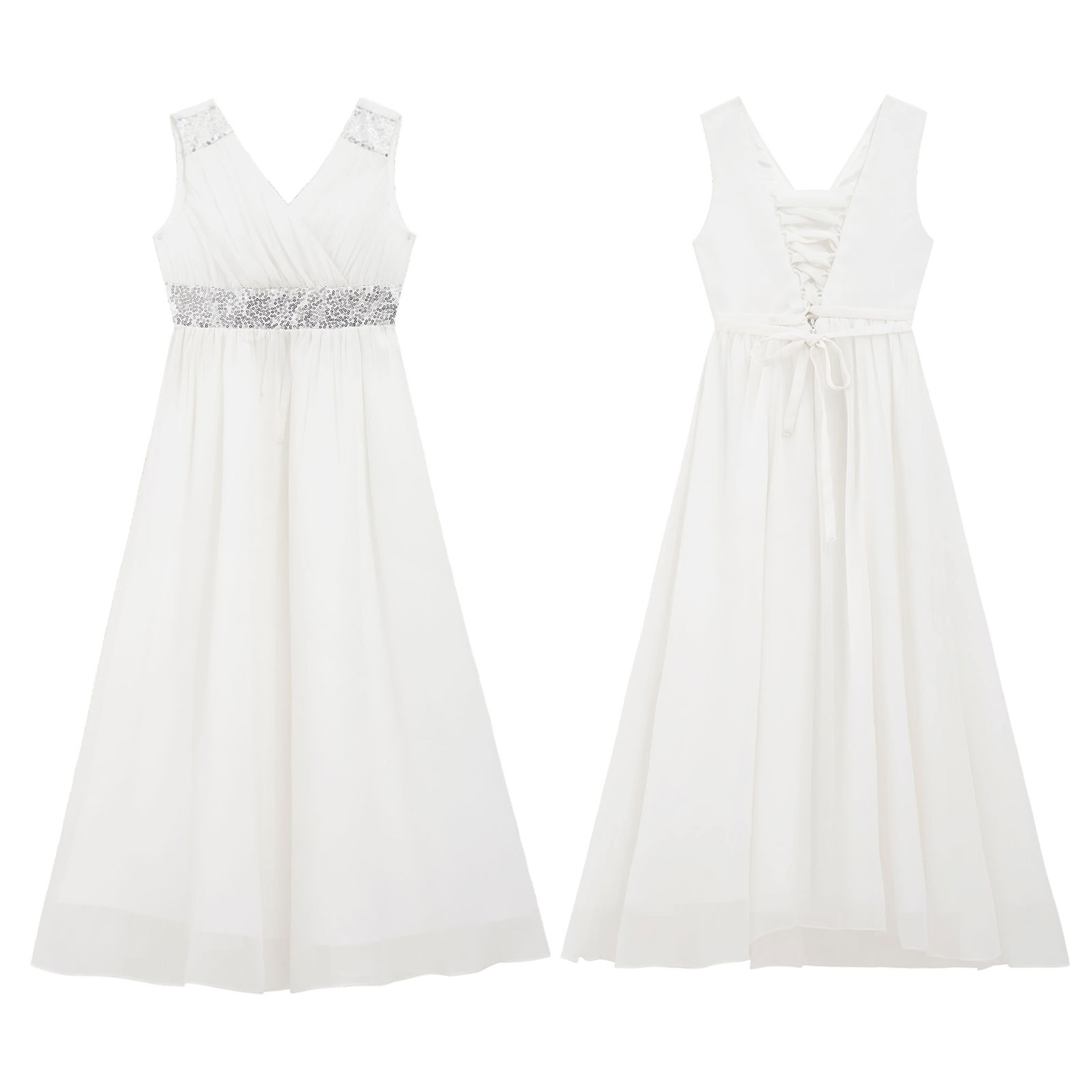Детское блестящее шифоновое свадебное платье с блестками для девочек однотонное вечернее платье без рукавов с v-образным вырезом и высокой талией на шнуровке.