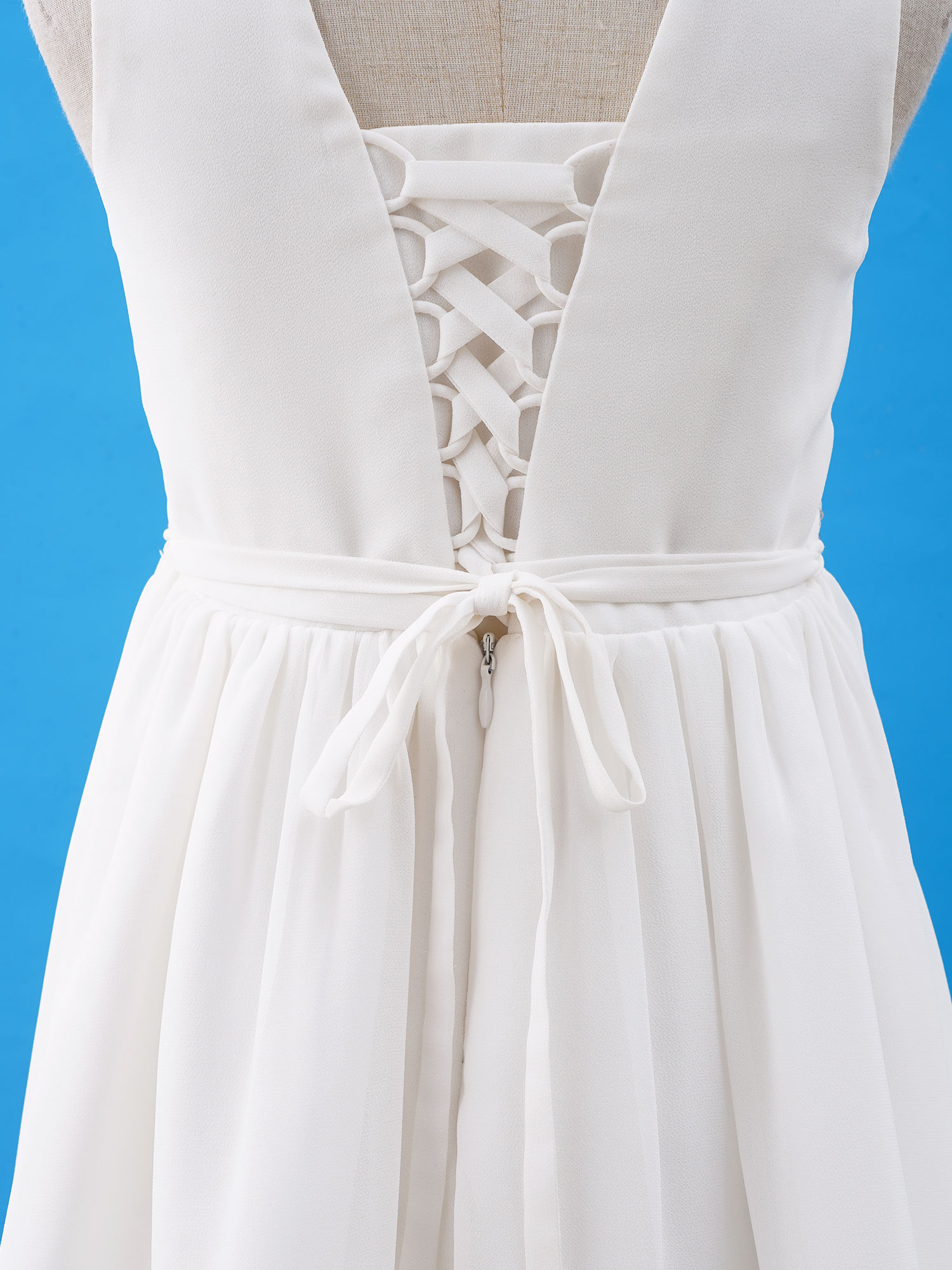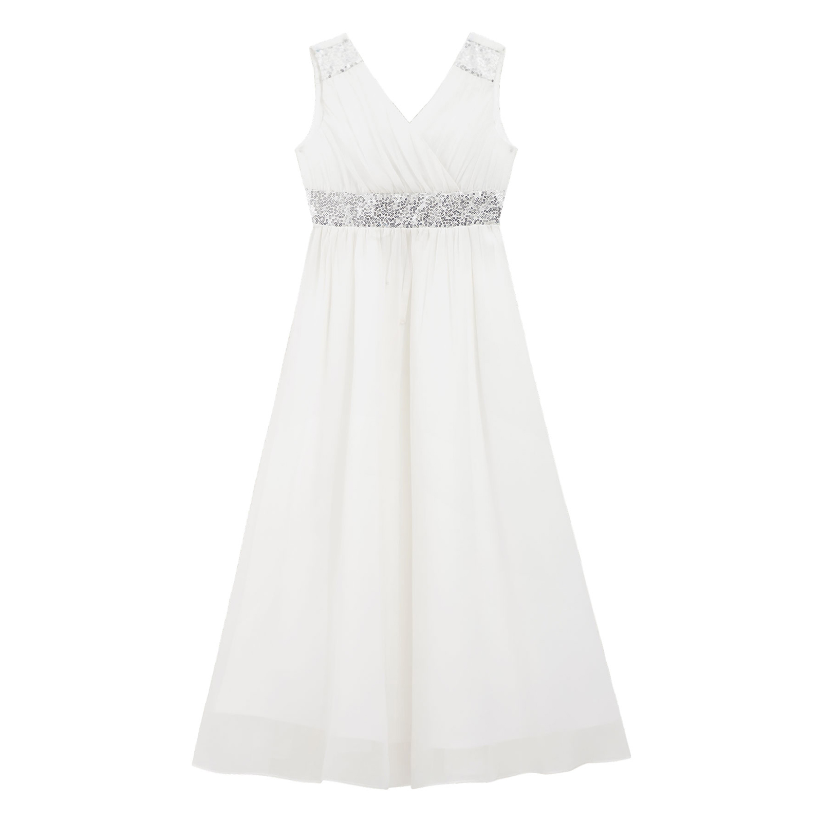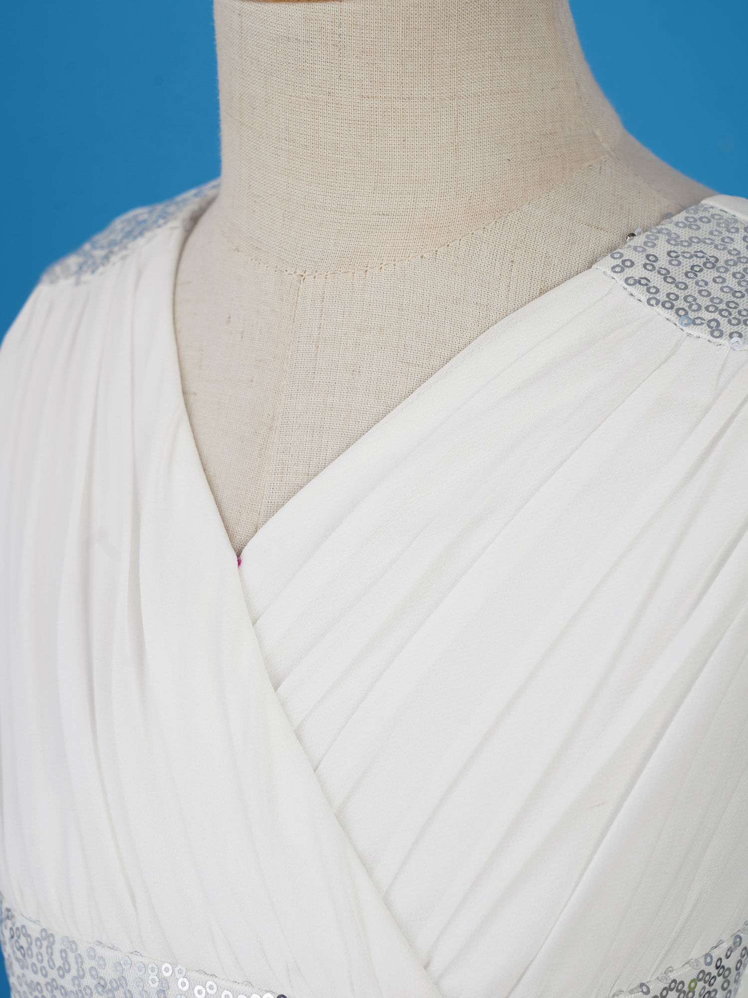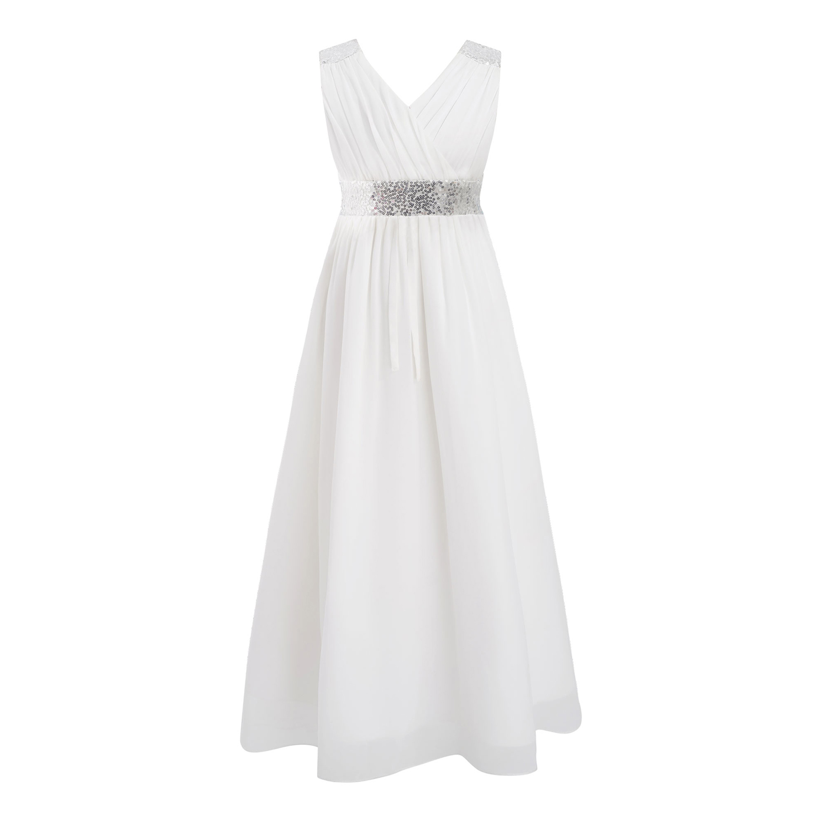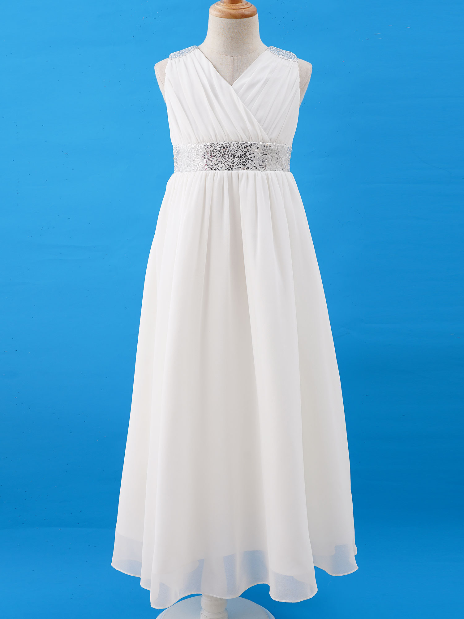 Детское блестящее шифоновое свадебное платье с блестками для девочек однотонное вечернее платье без рукавов с v-образным вырезом и высокой талией на шнуровке.