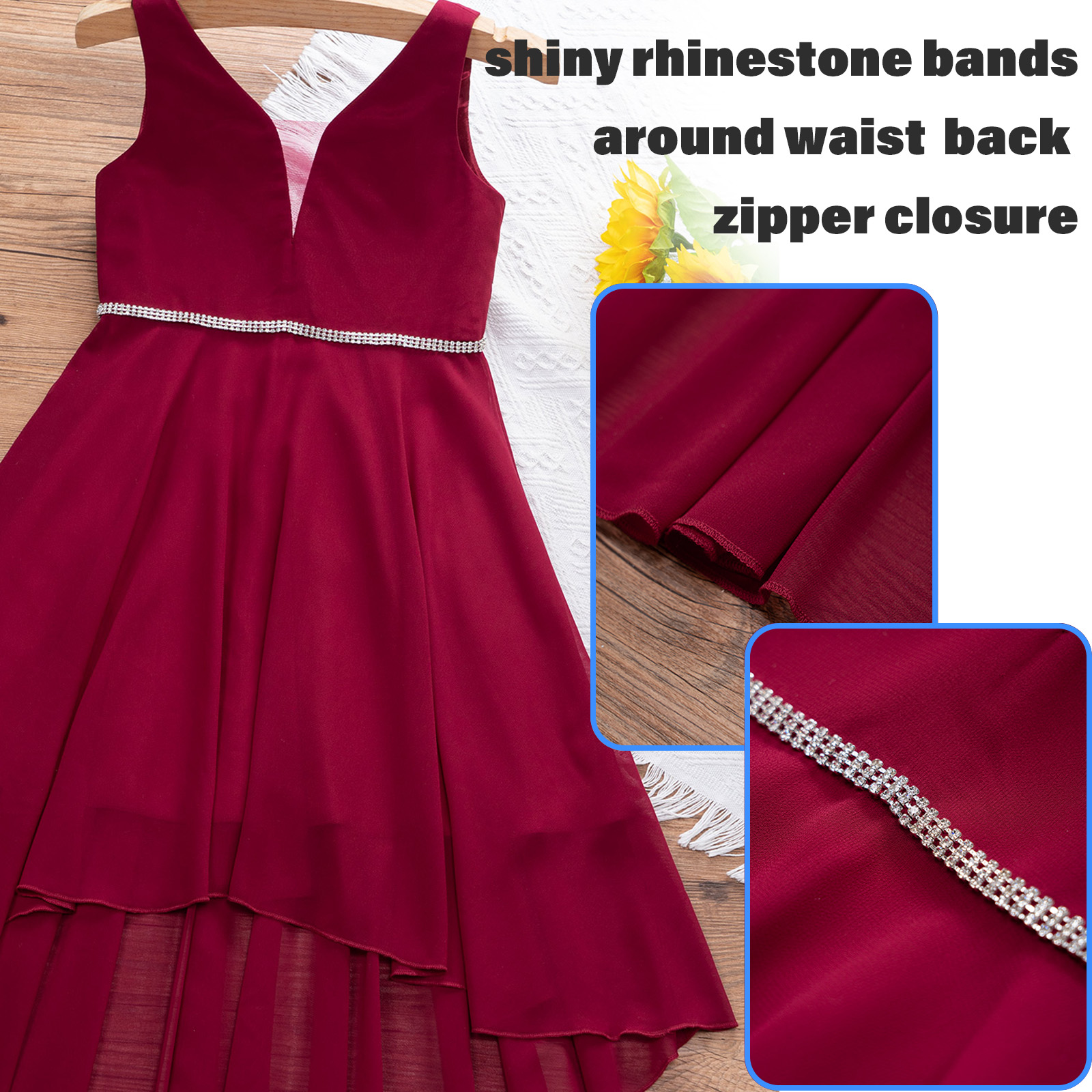 Junior Платье подружки невесты для девочек Детские платья для девочек, блестящие стразы, шифон, хай-лоу выпускного вечера бальное платье с цветочным узором для девочек свадебное платье