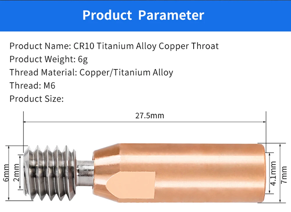 MEGA Ender3 CR10 Bi-Metal Heatbreak титановый сплав медная горловина гладкая 1,75 мм Тепловой разрыв для CR10 ENDER 5/3 CR-10S высокая температура