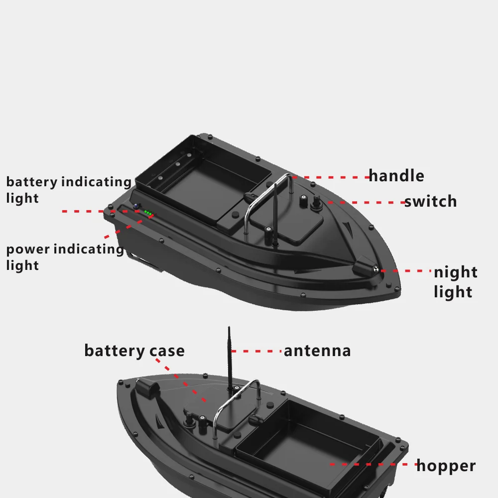 Версия GPS: принятие глобального GPS позиционирования, может установить четыре точки приманки и эффективно привлечь рыбу. Когда корпус выходит из строя или аккумулятор не работает, он автоматически вернется, чтобы ваша любимая лодка была в безопасности.