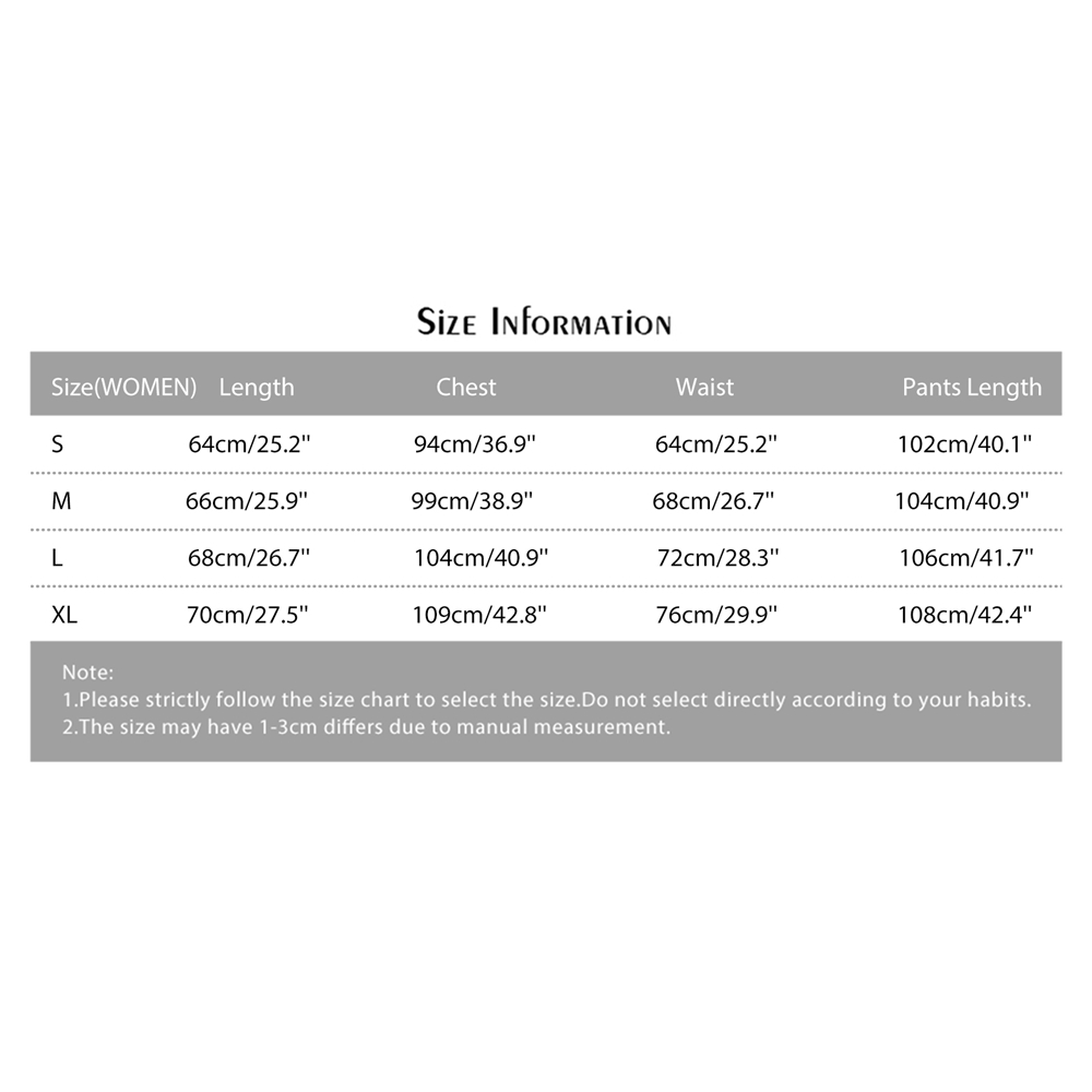 Size(WOMEN)--------Length---------------Chest--------------Waist--------Pants Length