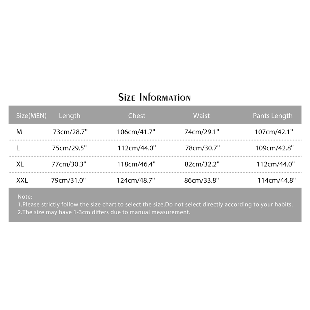 Size(MEN)----------Length---------------Chest-------Waist------------Pants Length