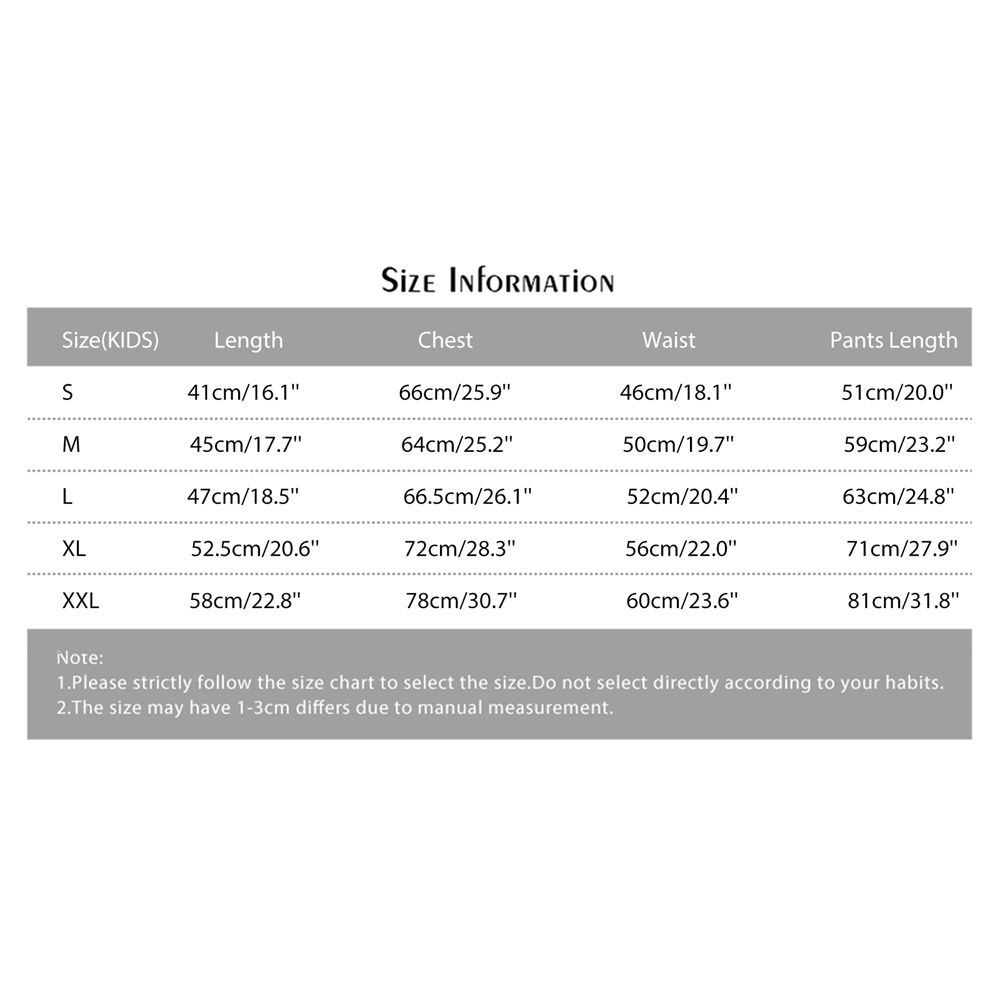Size(KIDS)--------Length---------------Chest---------------Waist-----------Pants Length