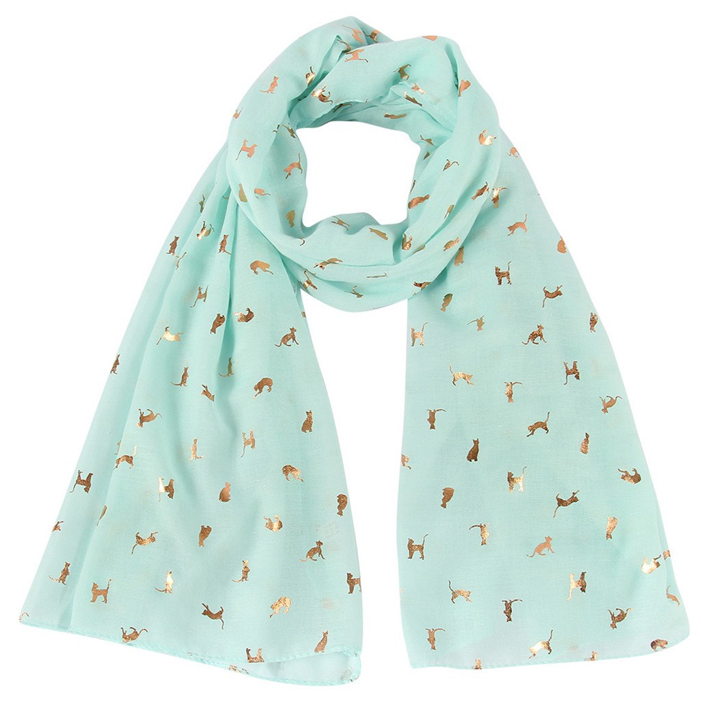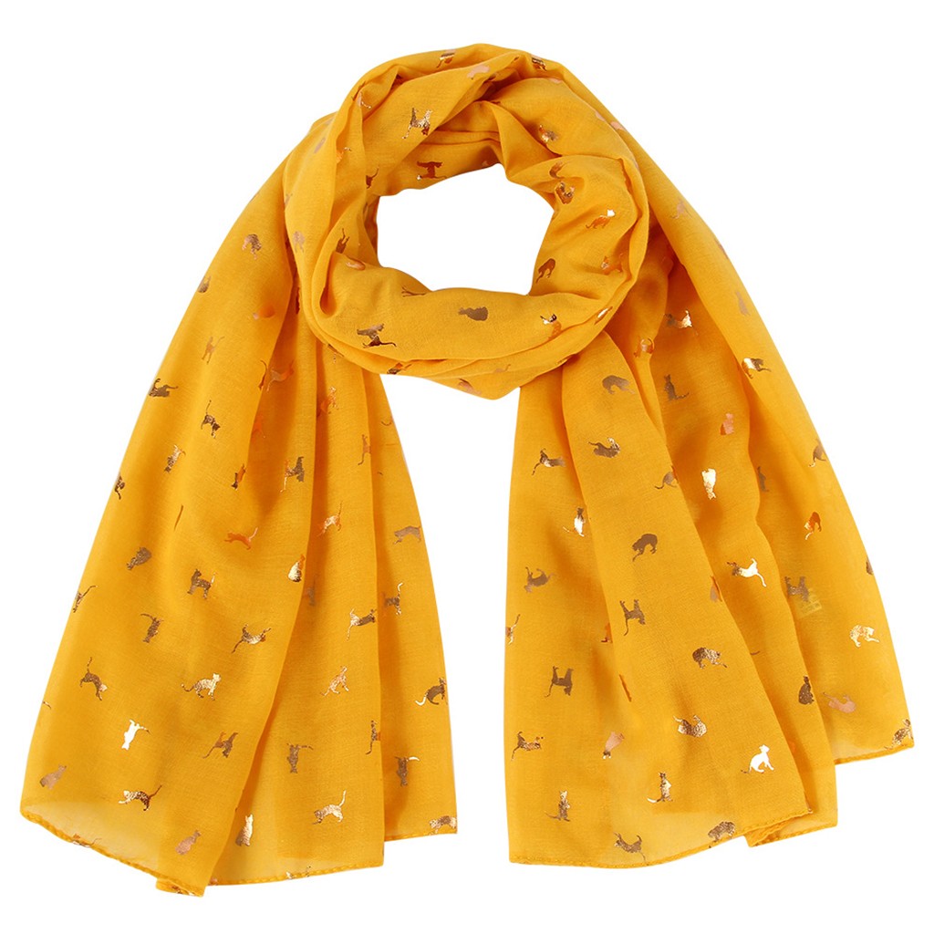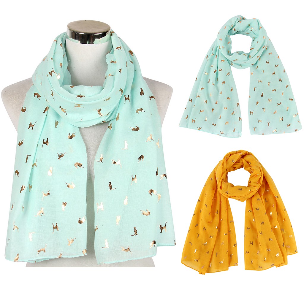 Женский модный шарф с принтом кота из фольги, шелковый шарф, шарфы для путешествий