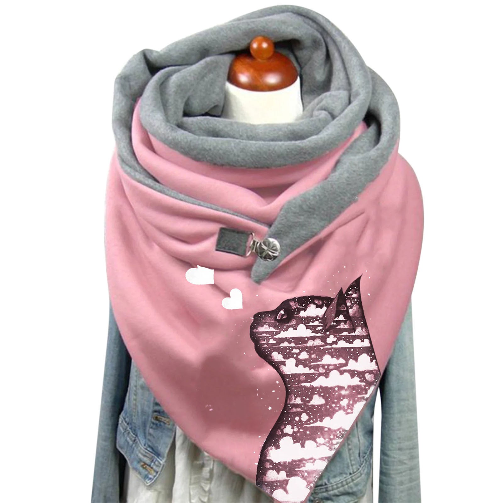 Модные женские повседневные теплые шарфы на пуговицах с принтом