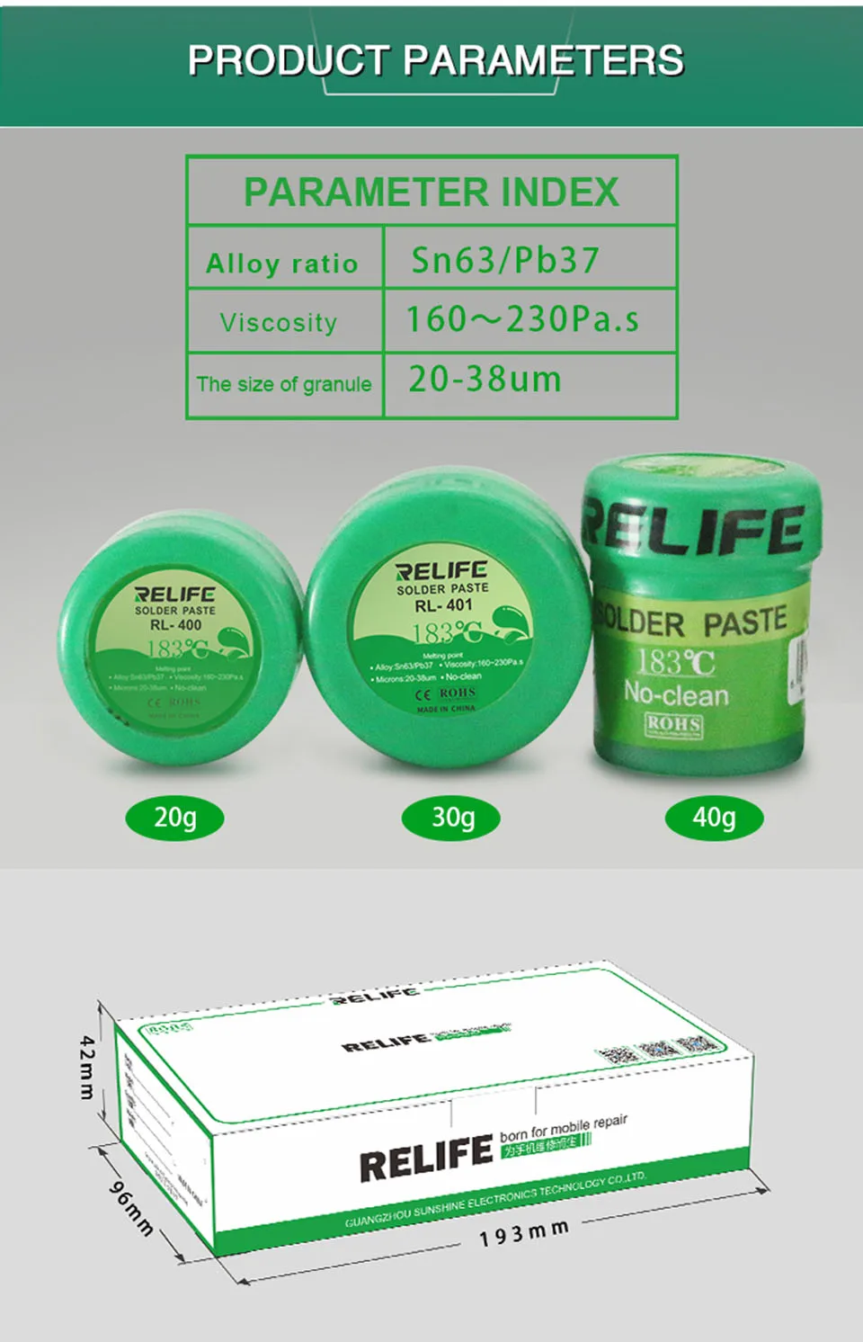 Паяльная паста RELIFE Flux-RL-400 183 °C припой олова Sn63/Pb67 20-38um, паяльная паста RELIFE, уникальное производство припоя