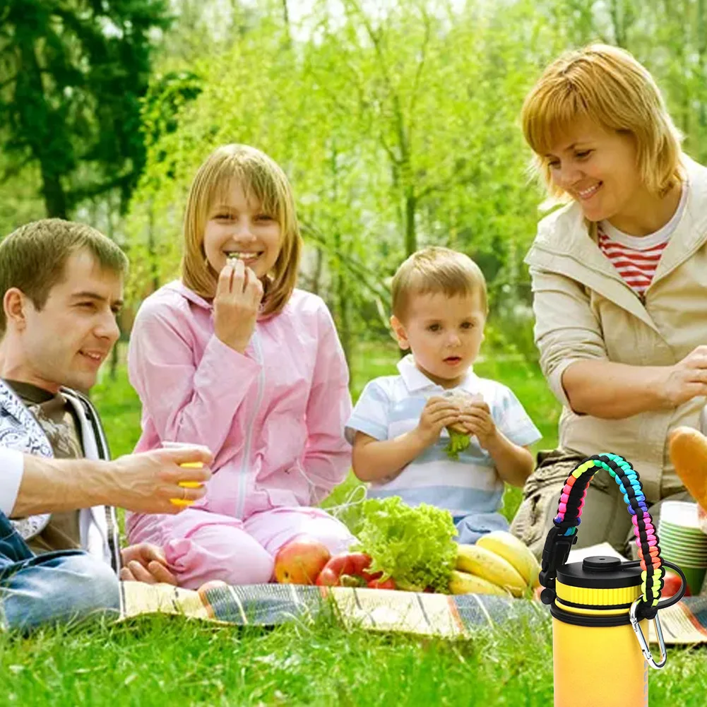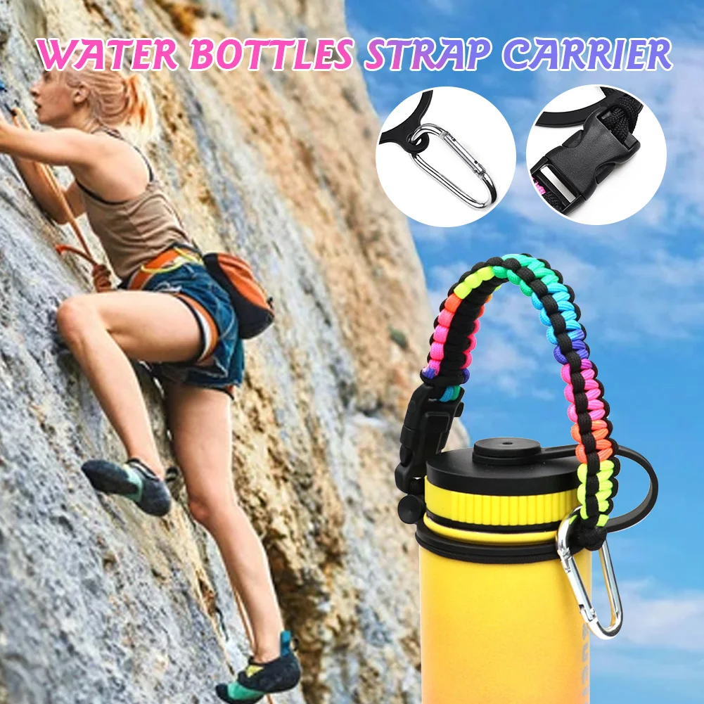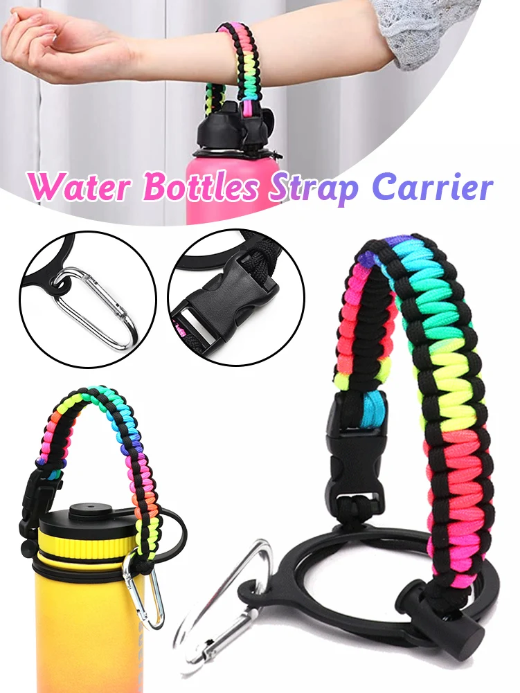 * 2. Несколько функций: этот держатель для бутылок с водой оснащен резиновым защитным кольцом, который лучше защитит вашу бутылку с водой от падения. Дизайн карабина делает вашу бутылку воды можно прикрепить к рюкзакам, коляскам, кошелькам, чемоданам и фитнес-сумкам. Ручка также может быть разобрана.