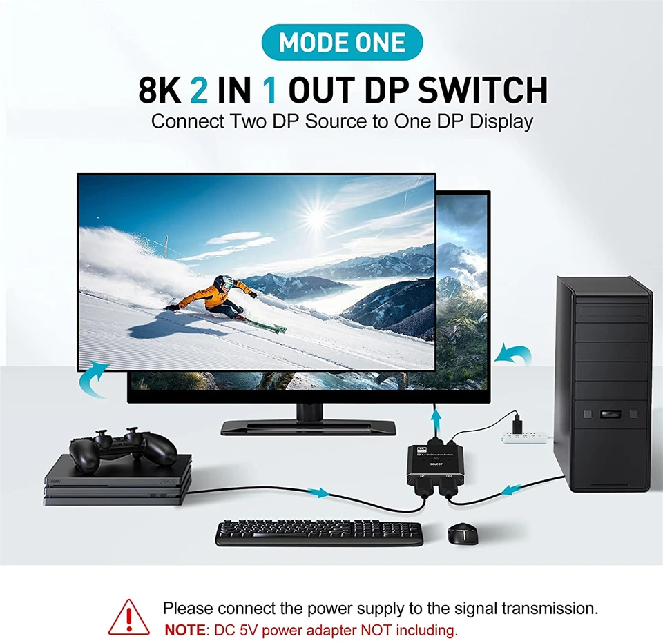 ZY-AQD,Navceker DP 1,4 8K @ 60 Гц, один вход, два выхода и два входа, один выход, двунаправленный переключатель. Видеовыход высокой четкости: изображение обладает высокой реалистичностью, яркими цветами, четкими, четкими и яркими деталями.