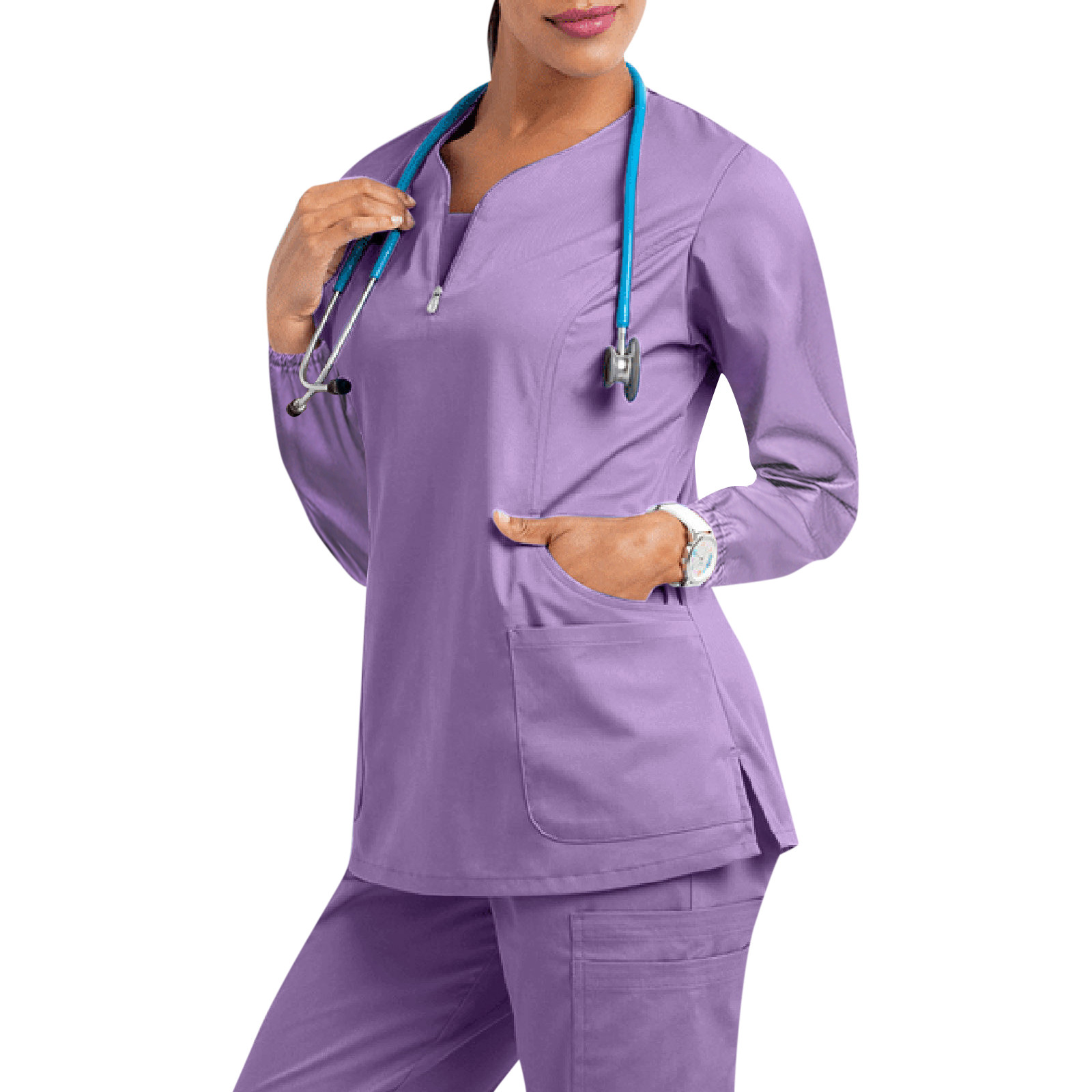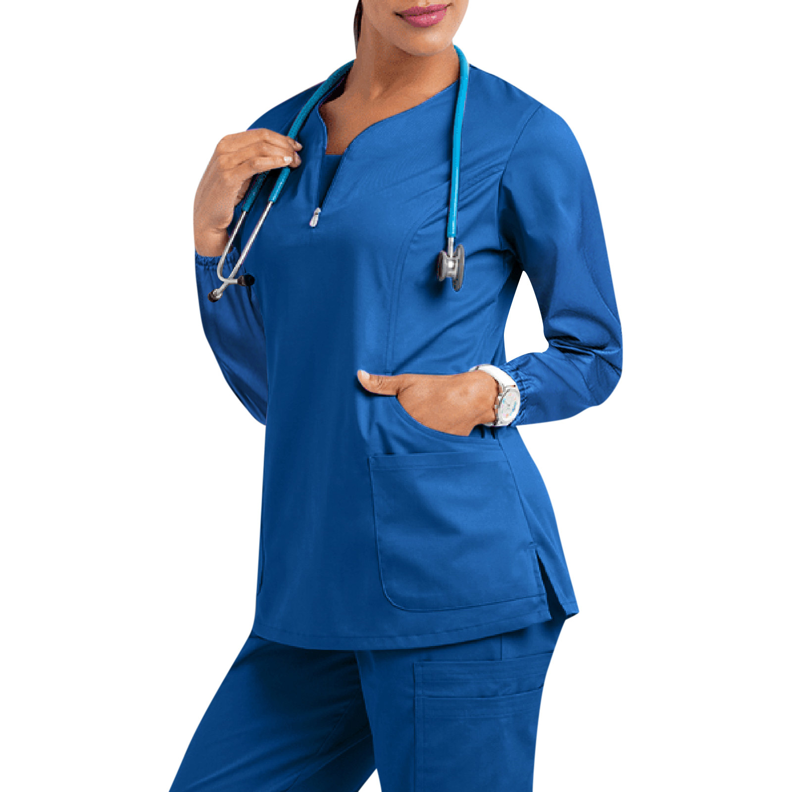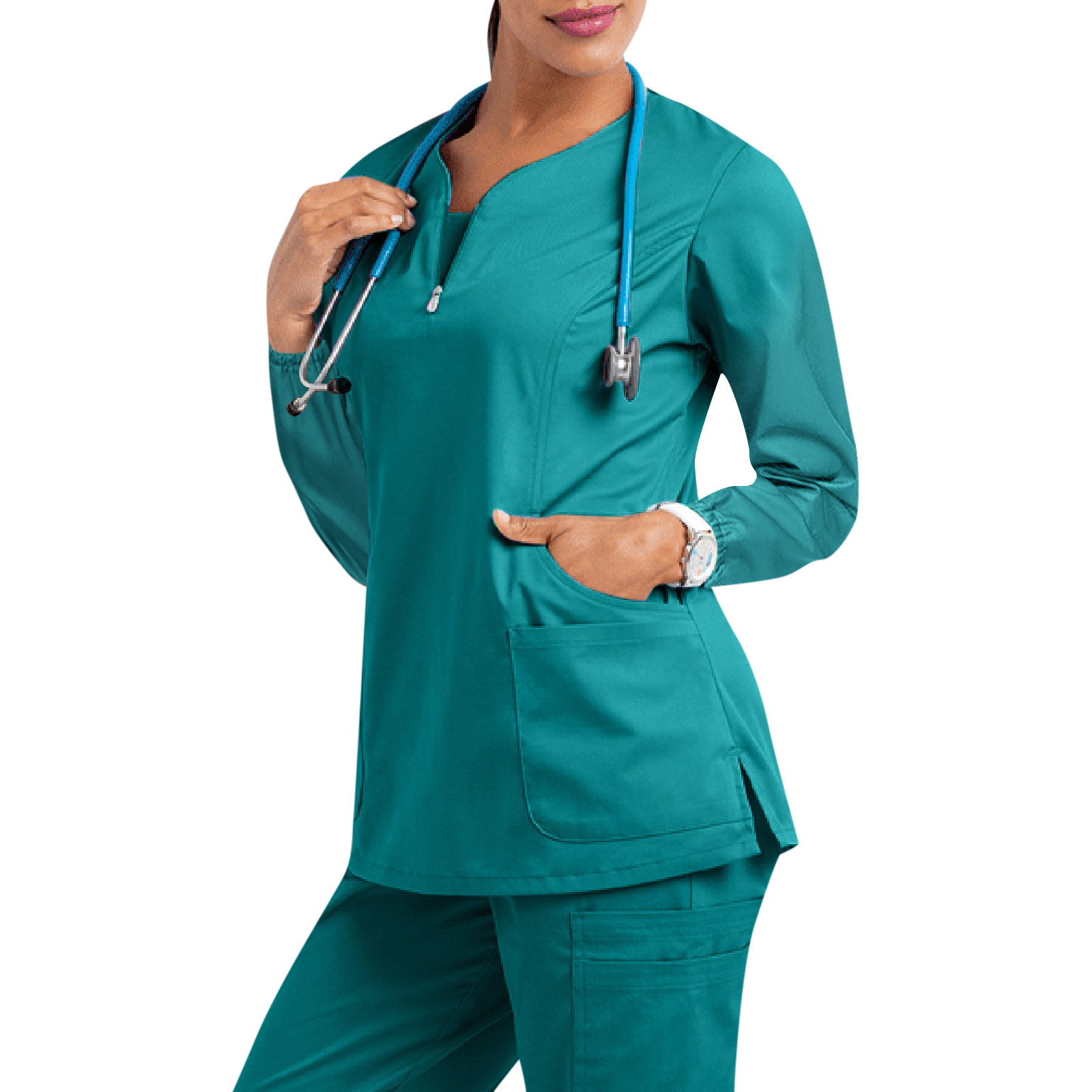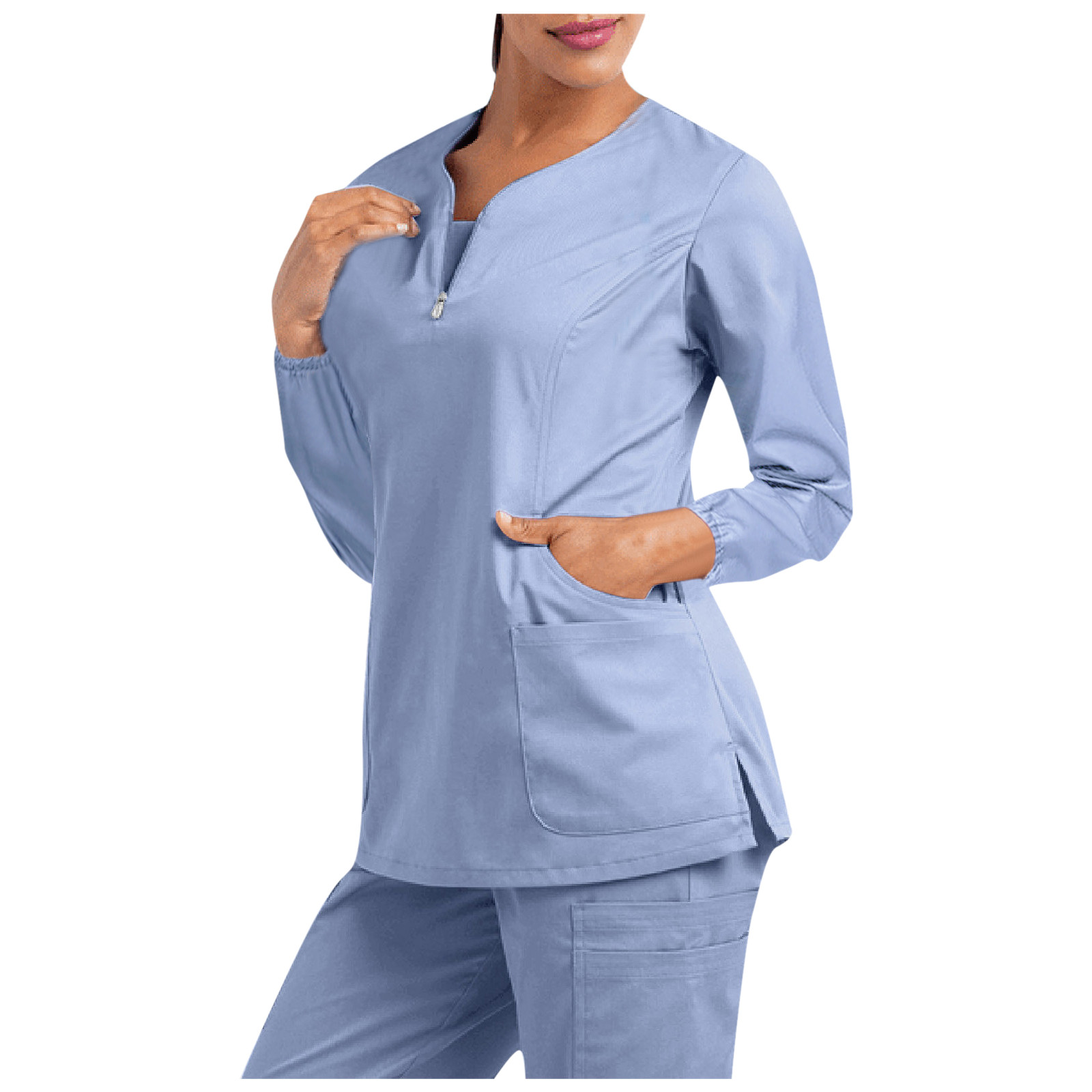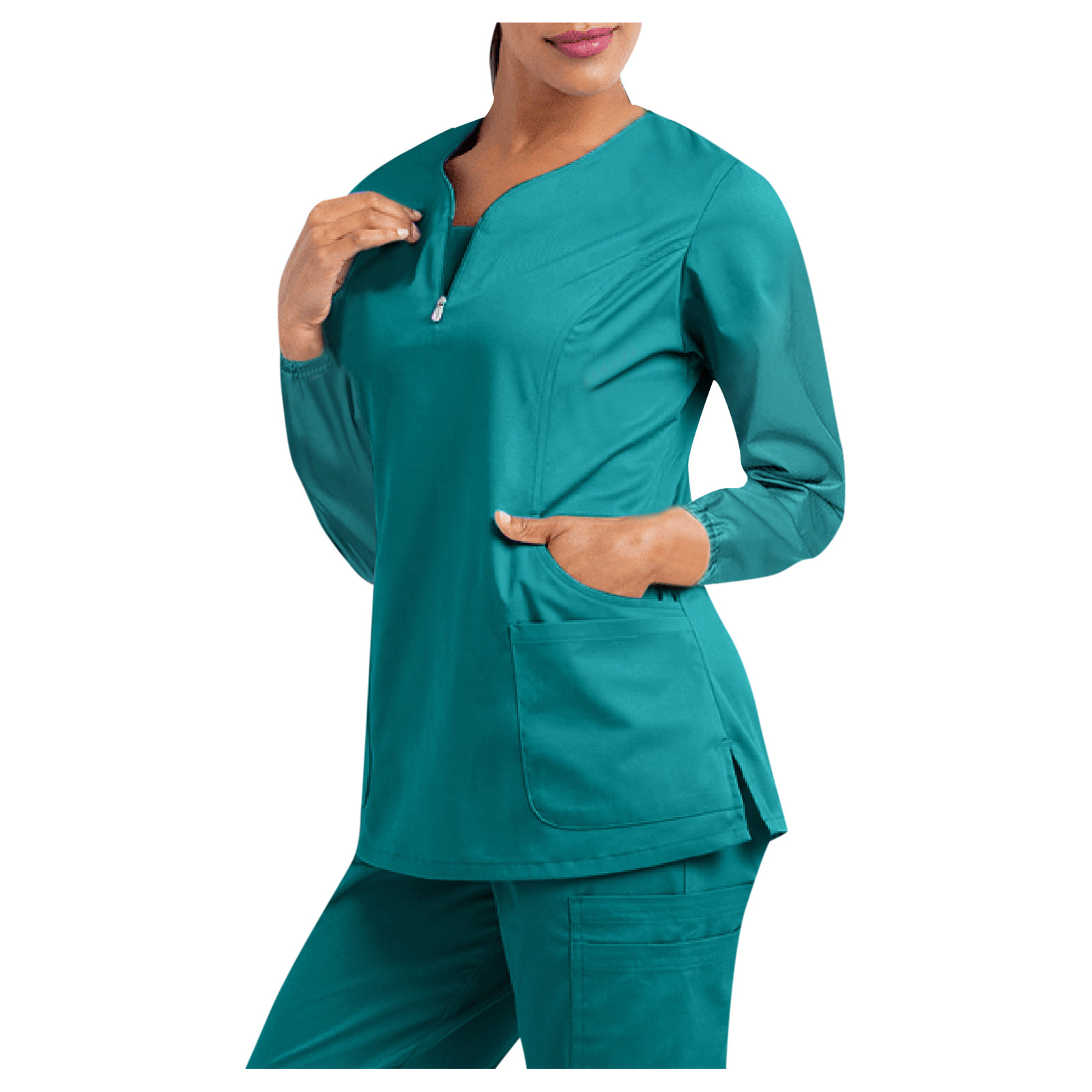 Женская футболка с длинным рукавом и v-образным вырезом, с карманом, однотонные Топы
