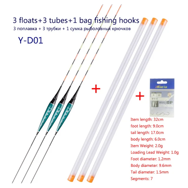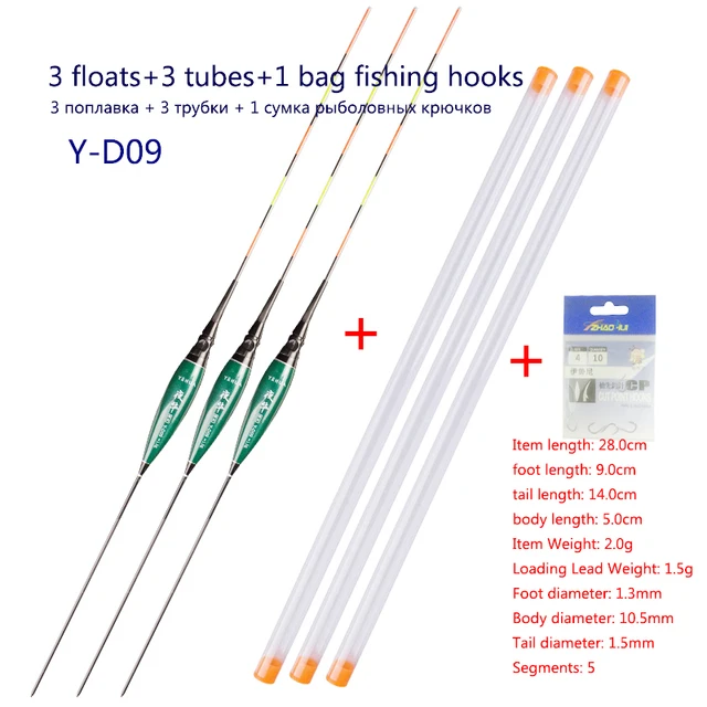 3 pieces fishing floats without battery+3 pieces tubes+1 bag of gift fishing hooks