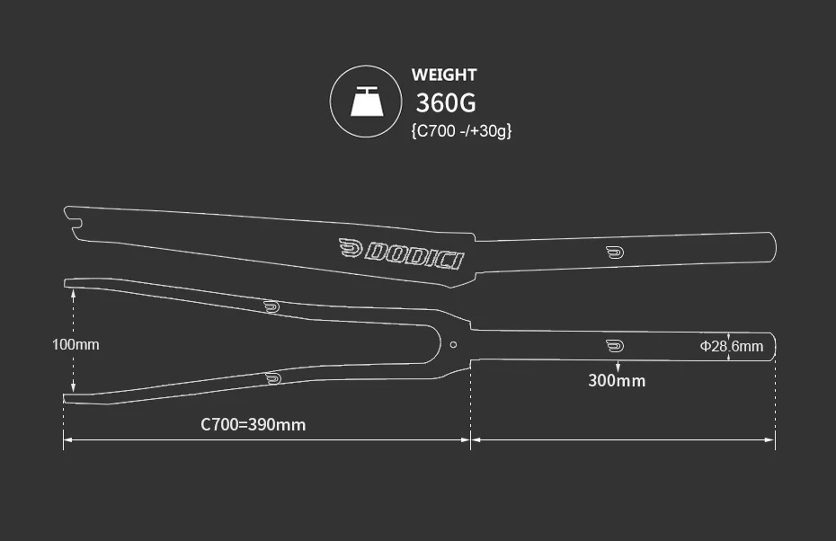 1. Full carbon fiber material: The front fork is made of Toray T700 carbon fiber. The carbon fiber material is durable, more corrosion-resistant than aluminum alloy material, and has a longer service life.