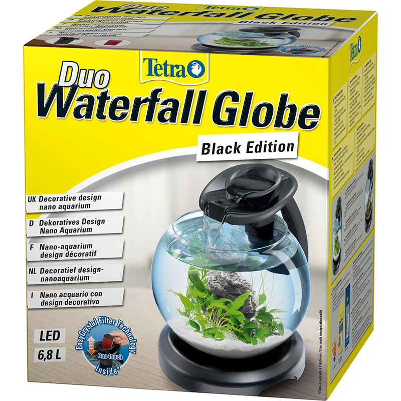 Tetra Duo Waterfall Globe White Edition Черный это круглый нано-аквариум с эффектом умиротворяющего водопада - украсьте ваш дом, создав собственный подводный мир.