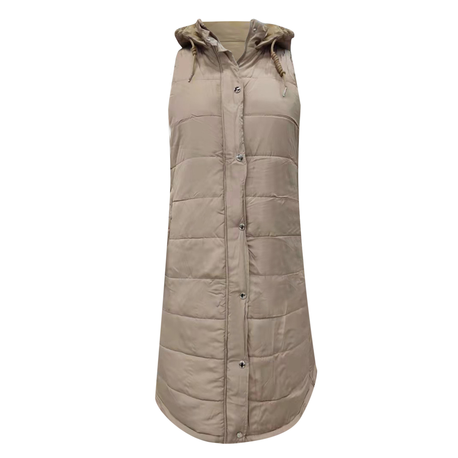 Женское длинное зимнее пальто, жилет с капюшоном, без рукавов, теплый пуховик с карманами, стеганый жилет, пуховик, стеганая куртка для улицы