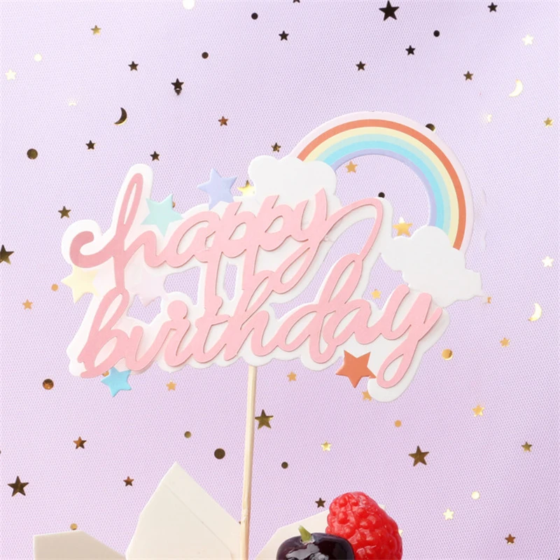 1 шт., разноцветные радужные украшение для торта «С Днем Рождения» розовые синие воздушные шары, детское украшение для вечеринки, украшение для выпечки