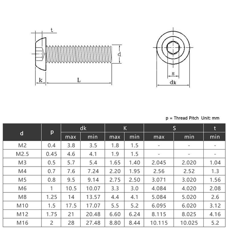 Модель: 10,9 черная круглая головка Шестигранная розетка винт M2 M2.5 серия
