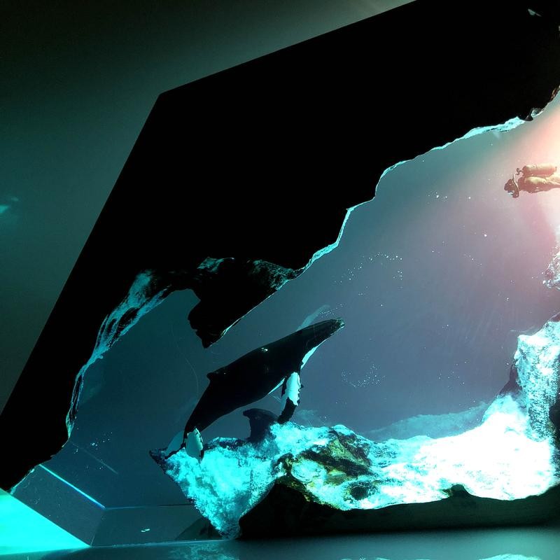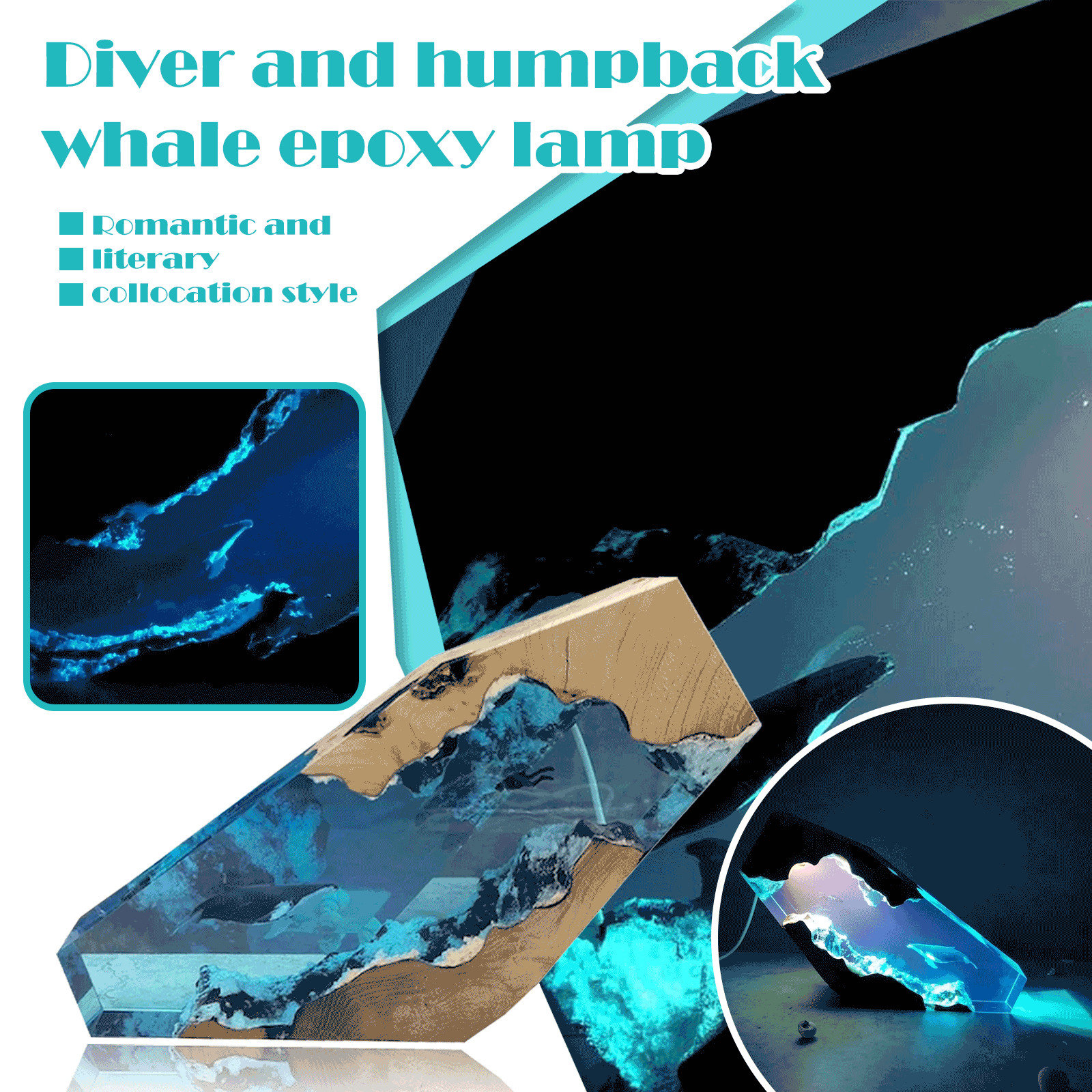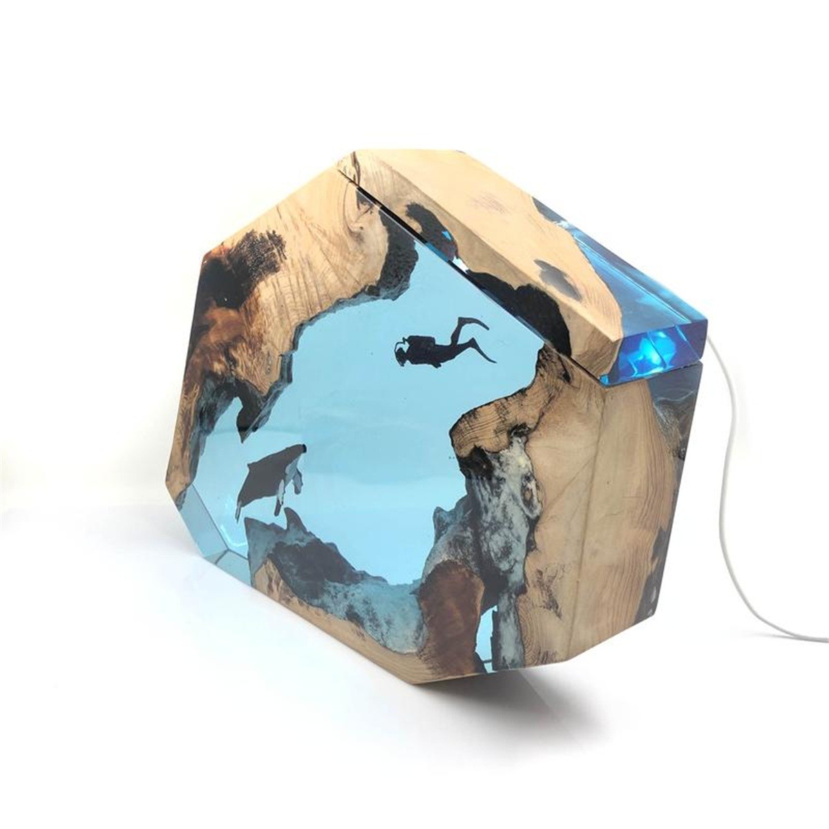 Большой смоляный деревянный художественный Ночной светильник, светильник снимается сверху, освещает ныряльщиков и китов в пещере. Включите свет ночью, полный этого загадочного цвета.