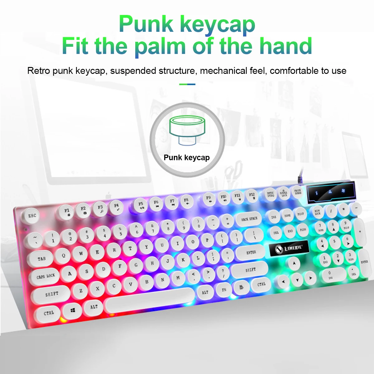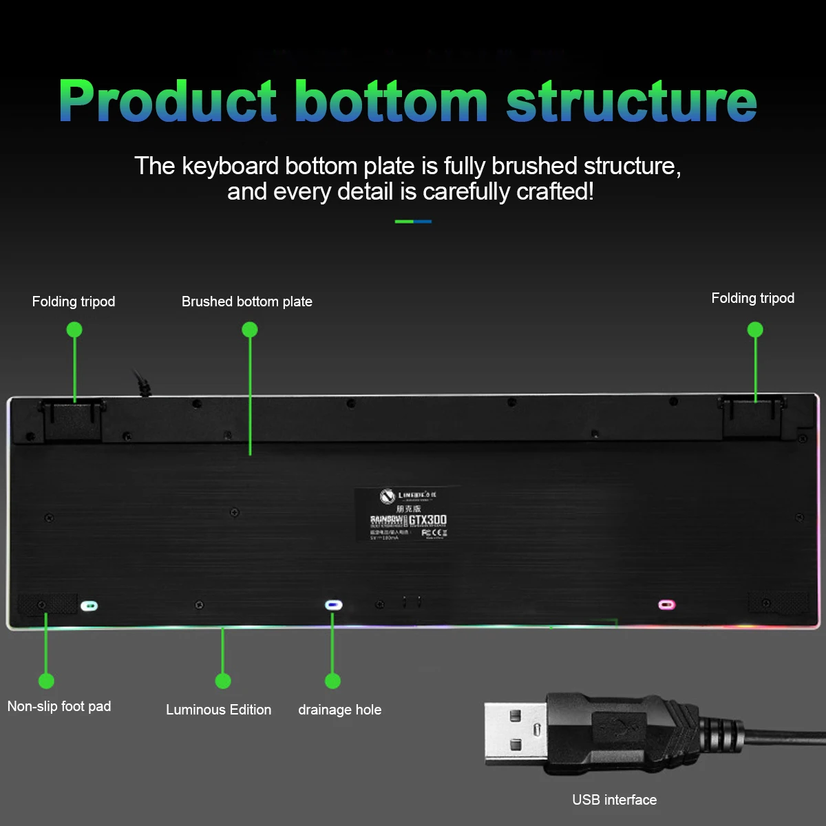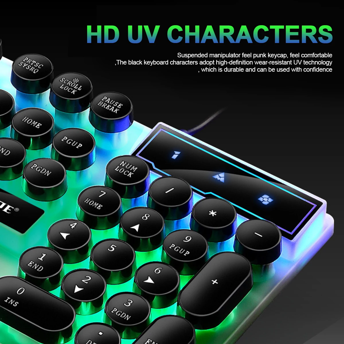 Игровая Проводная клавиатура ANMONE с изменяющимся цветом, круглые 104 клавиши, Радужный светодиодный игровой клавиатуры с подсветкой для ПК, ноутбука