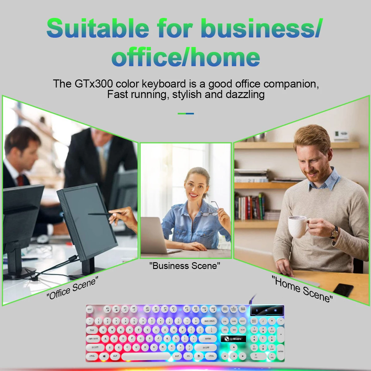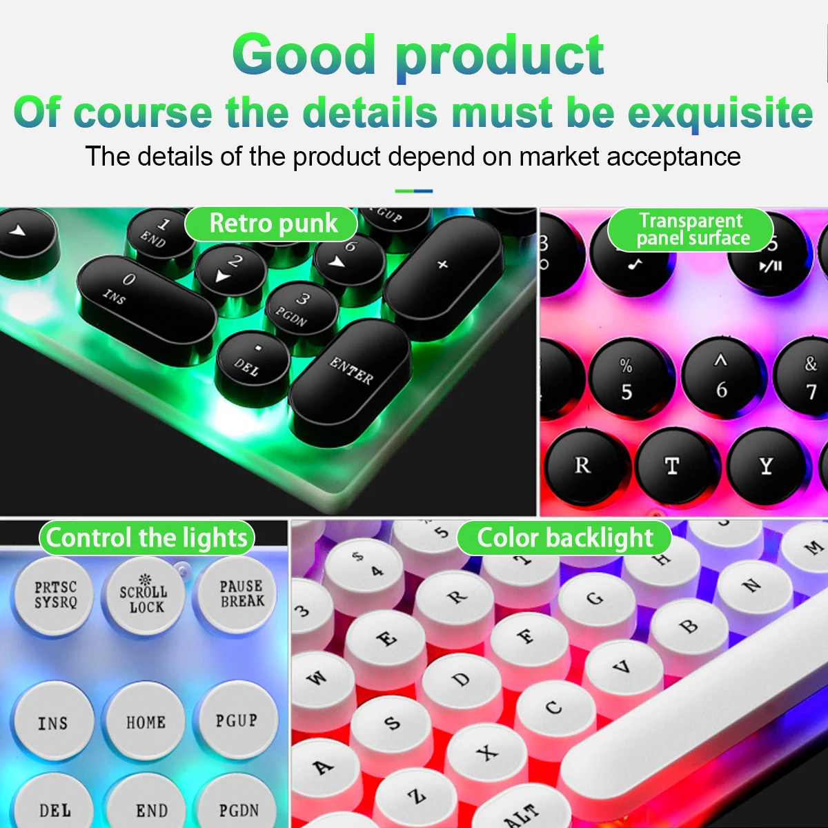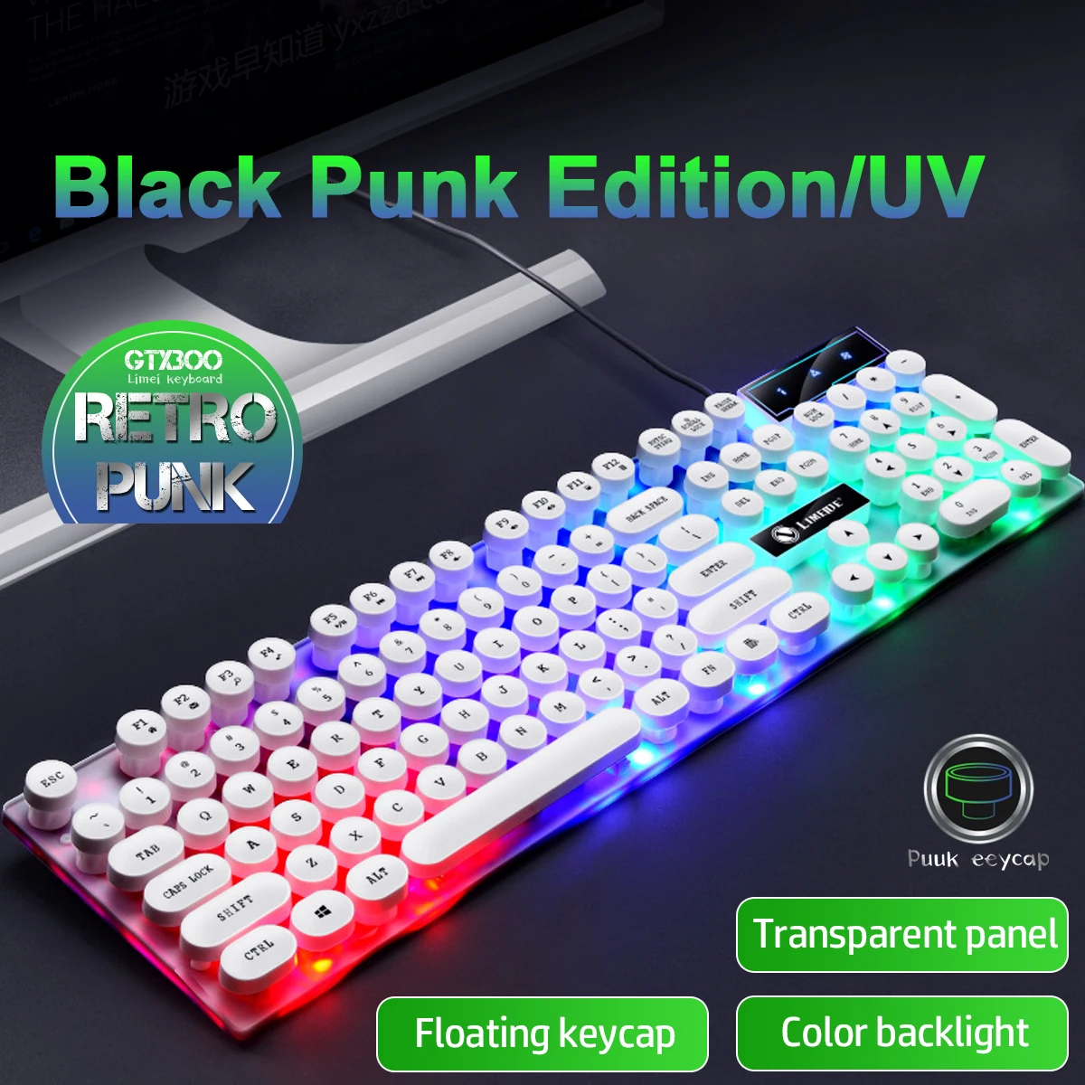 Игровая Проводная клавиатура ANMONE с изменяющимся цветом, круглые 104 клавиши, Радужный светодиодный игровой клавиатуры с подсветкой для ПК, ноутбука