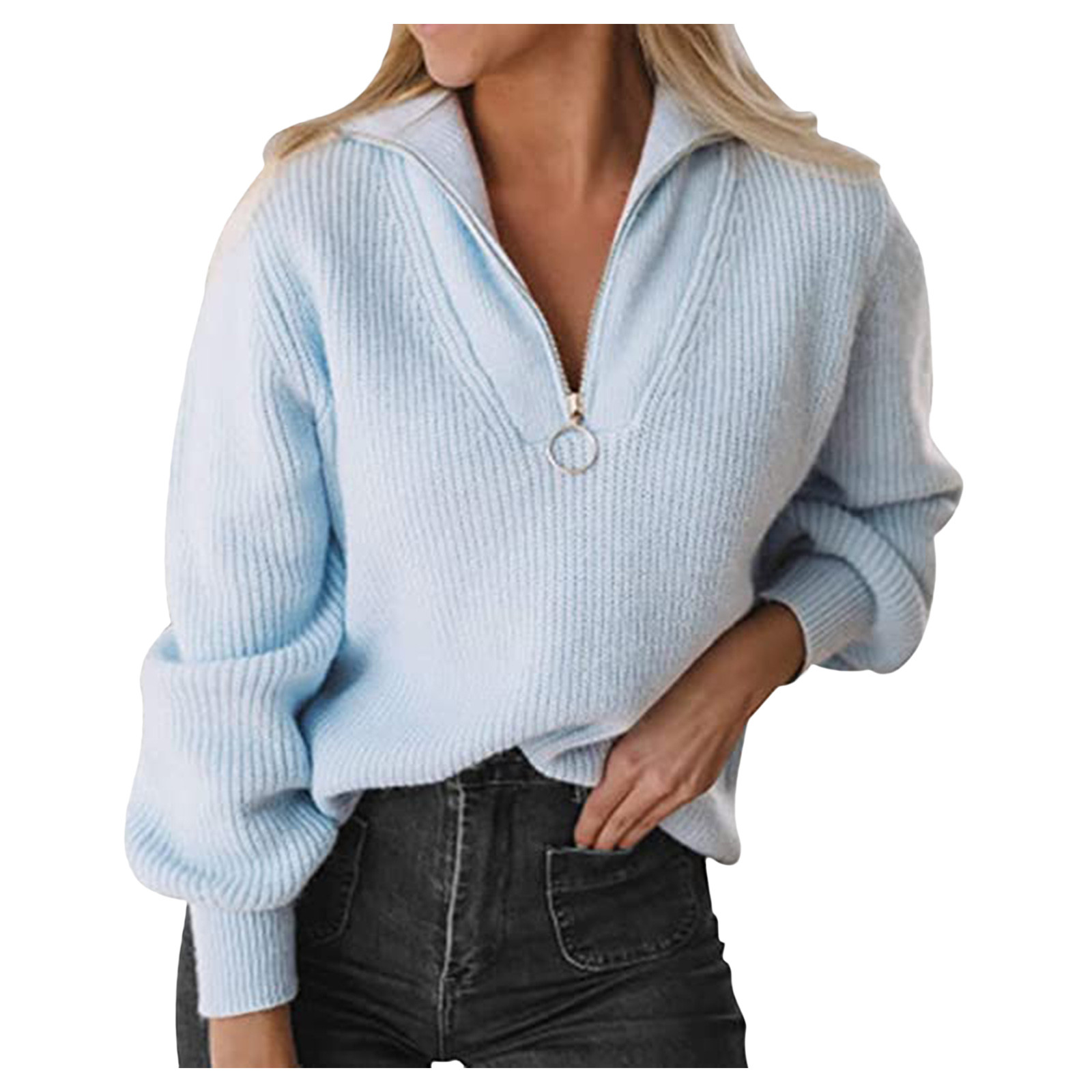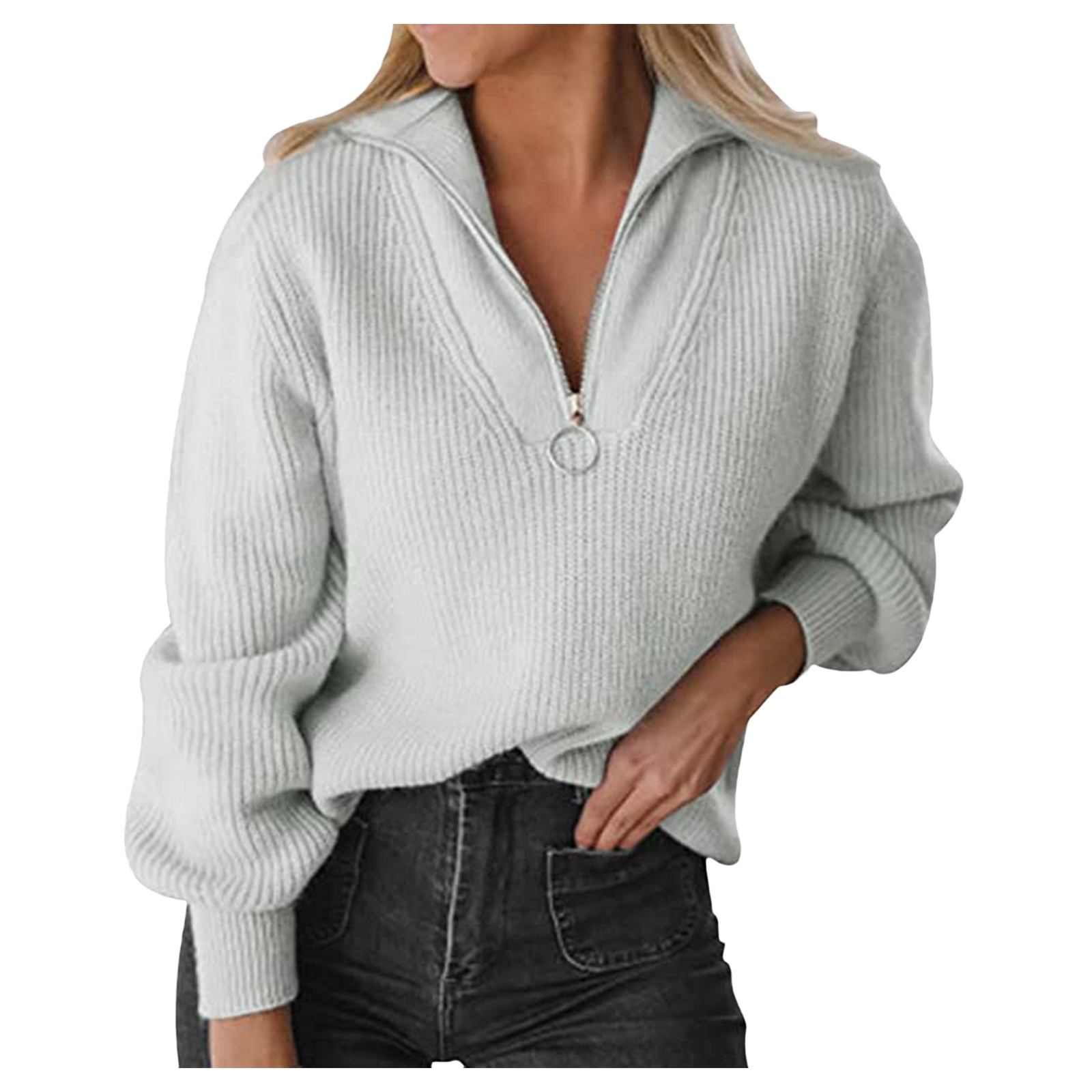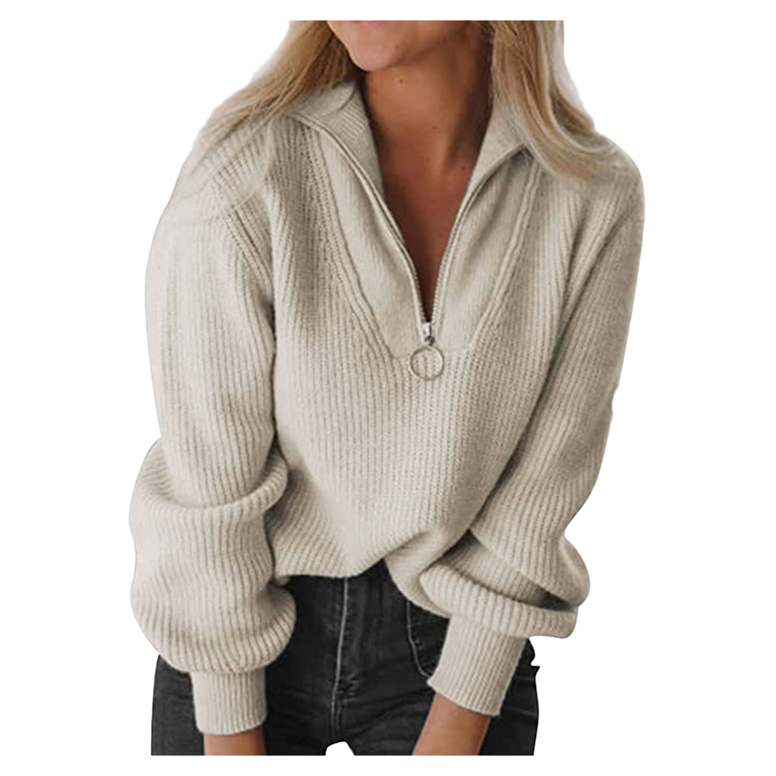 Женский осенний свитер большого размера, Зимний пуловер с v-образным вырезом, топы с длинными рукавами и полумолнией