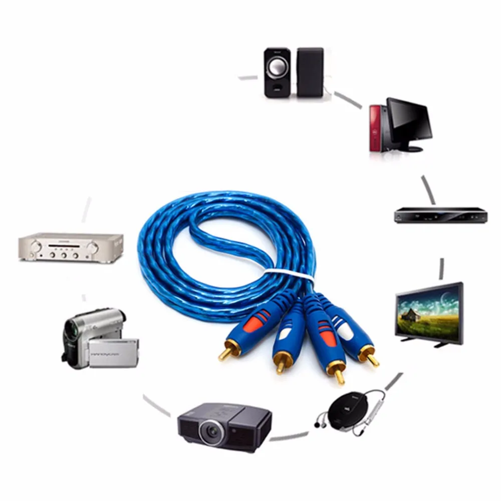 2RCA аудио кабель 1,5/3,0/5M окислению устойчивы дизайн 2RCA мужчина к 2RCA Мужской кабель для DVD цифровой плеер ТВ коробка