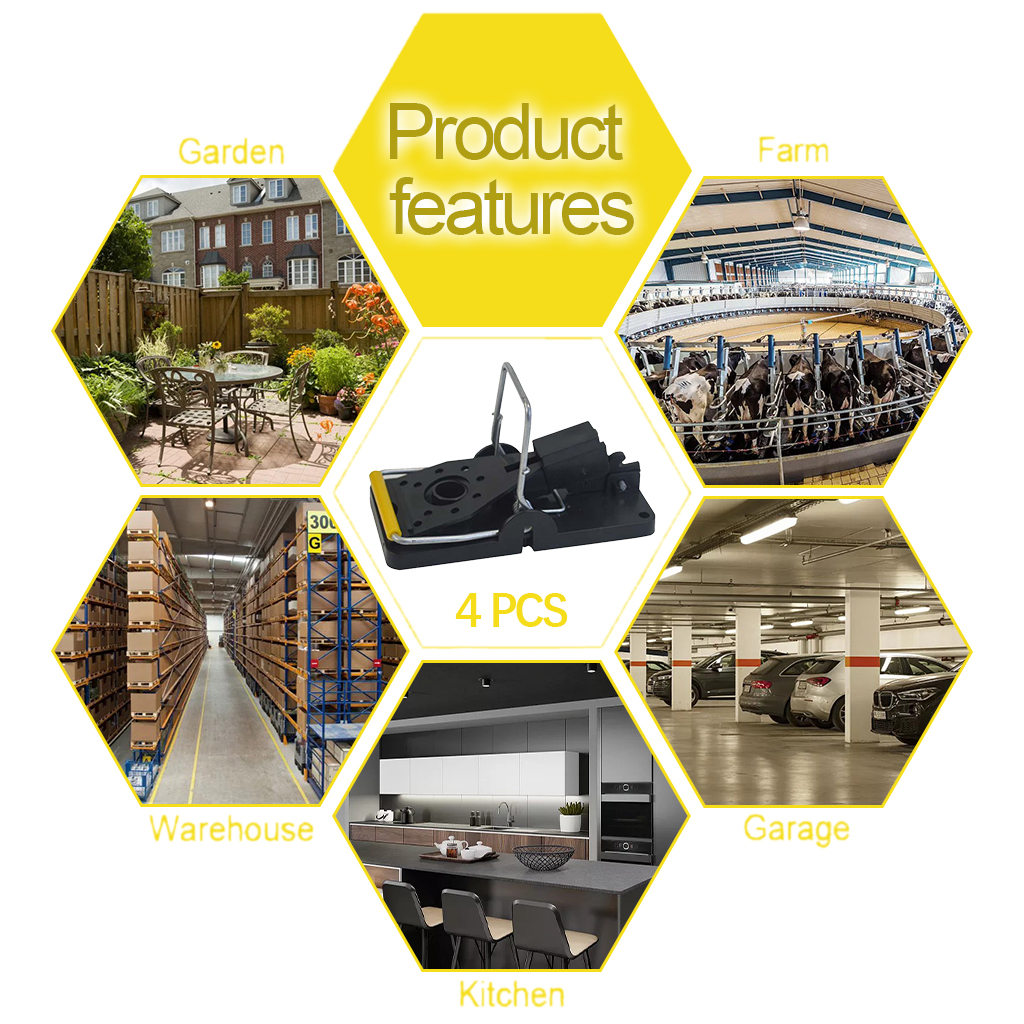 Простота в использовании и универсальность-наши гуманные ловушки для мыши просты в использовании, пока наживка помещается в чашку аттрактанта и фиксирует металлическую полоску на заднем сиденье. Затем поместите крысиного убийцы возле угла, ожидая, когда мышь будет поймана. Ловушки можно разместить в нескольких помещениях и на открытом воздухе.