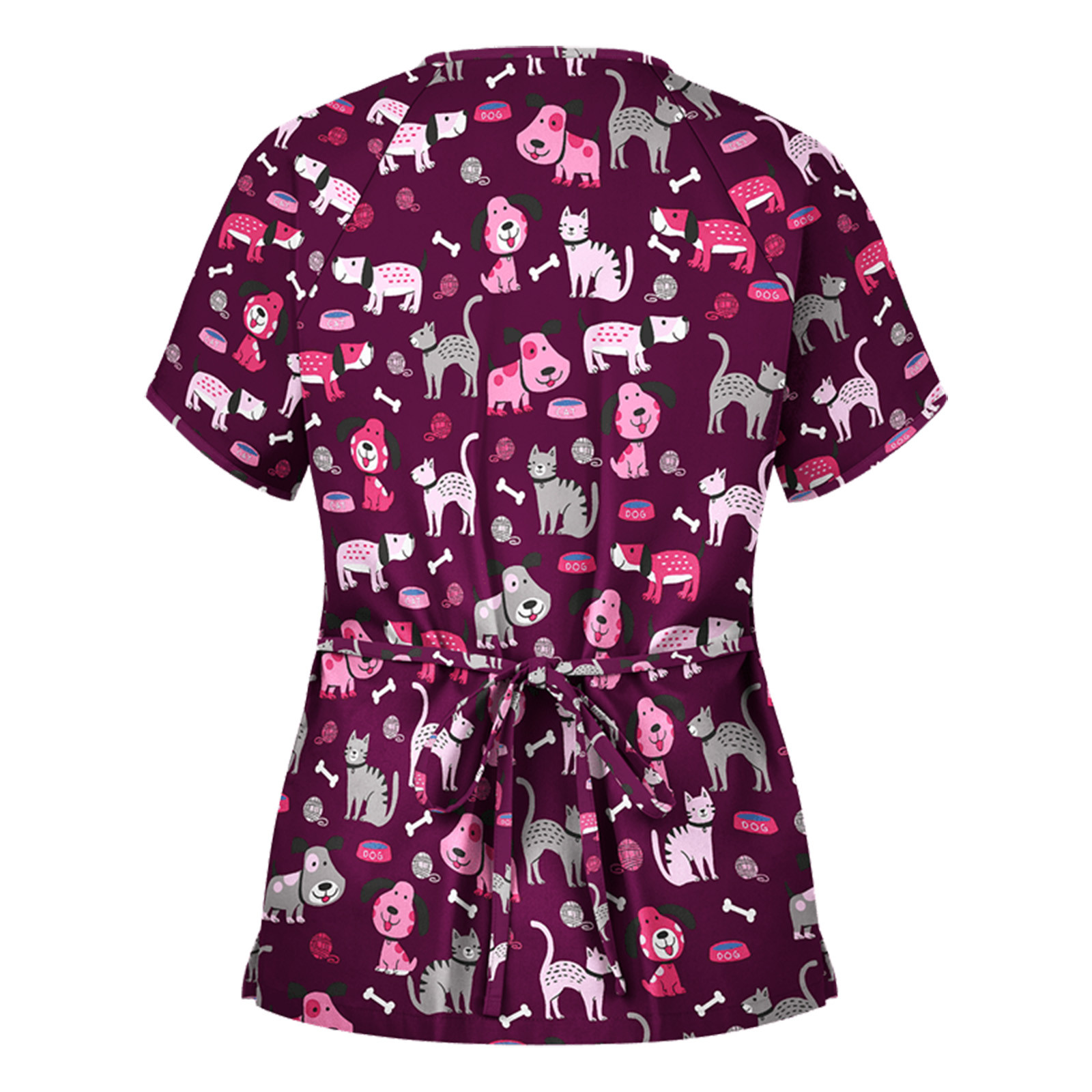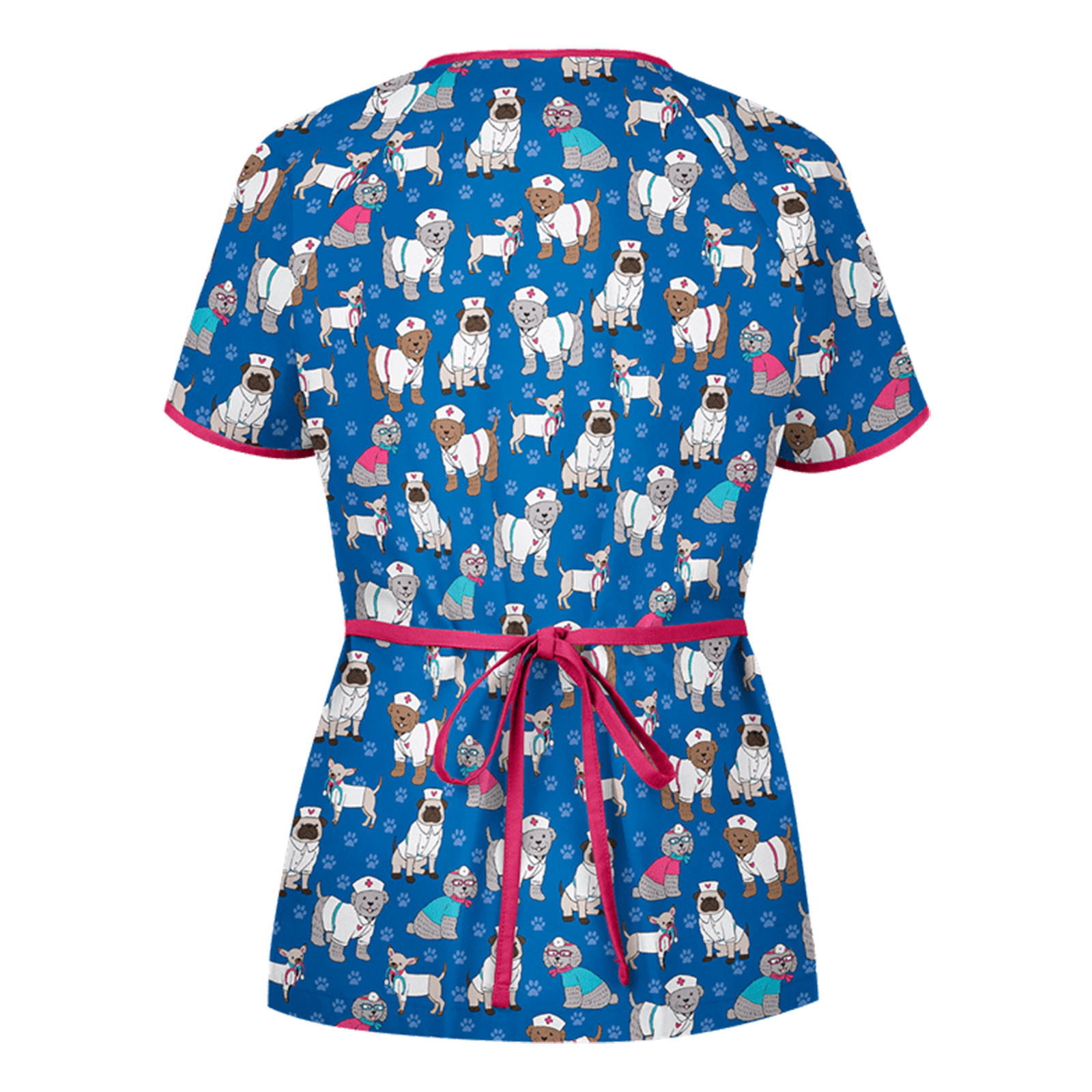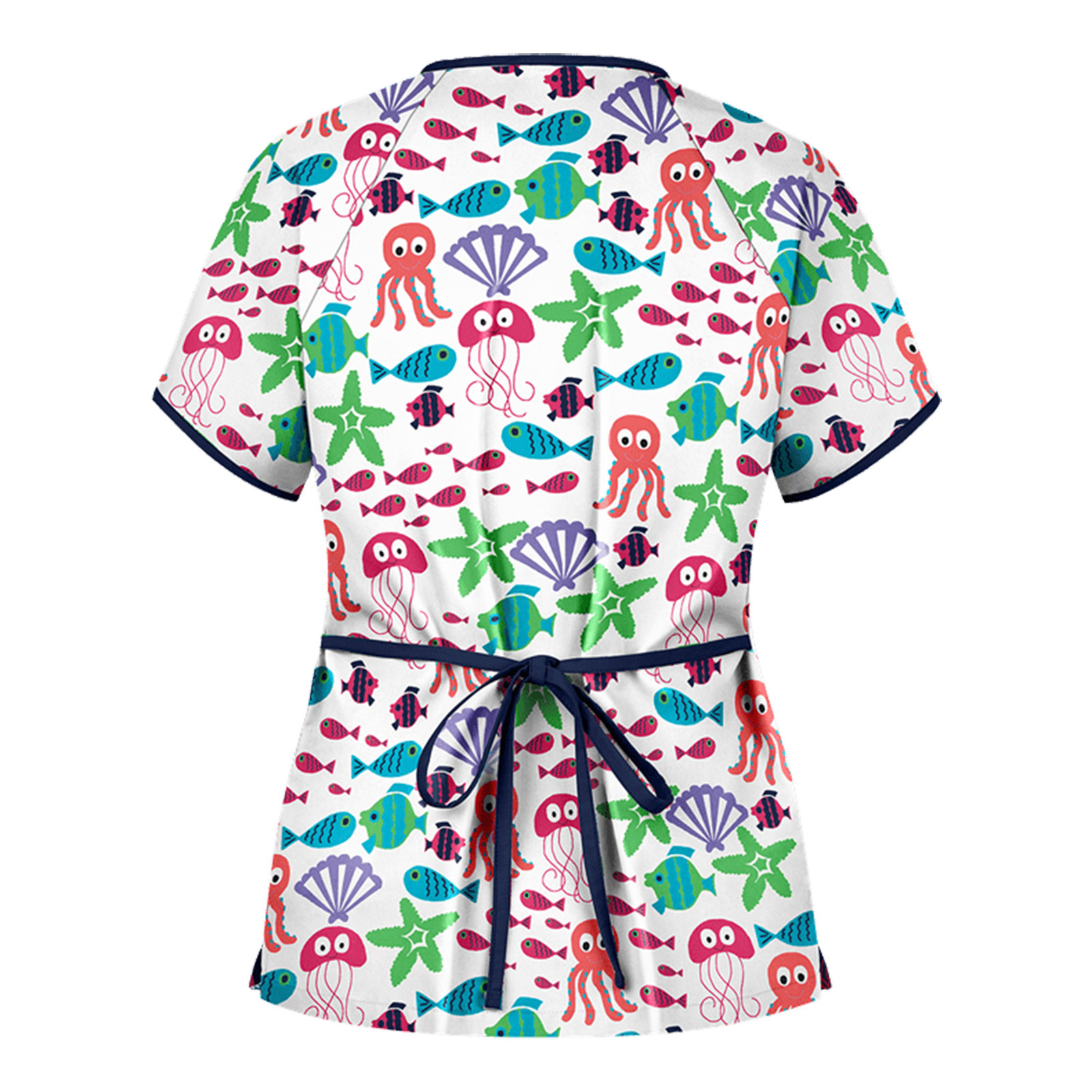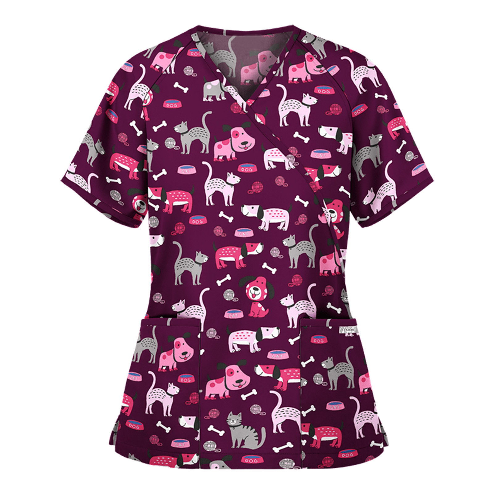 Женские топы с v-образным вырезом и коротким рукавом, рубашка с карманом, Рабочая Униформа, блузка