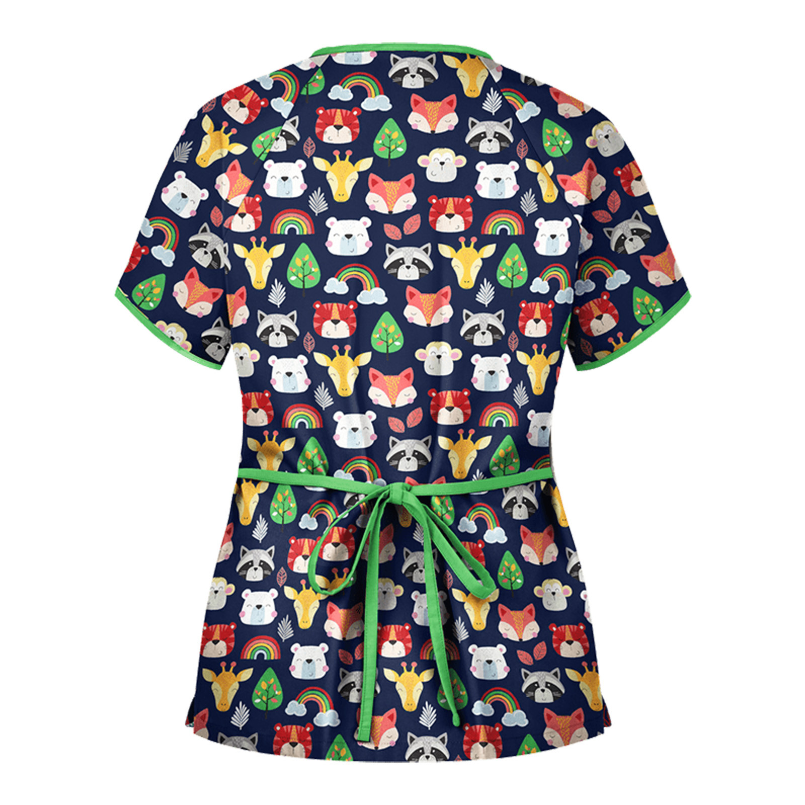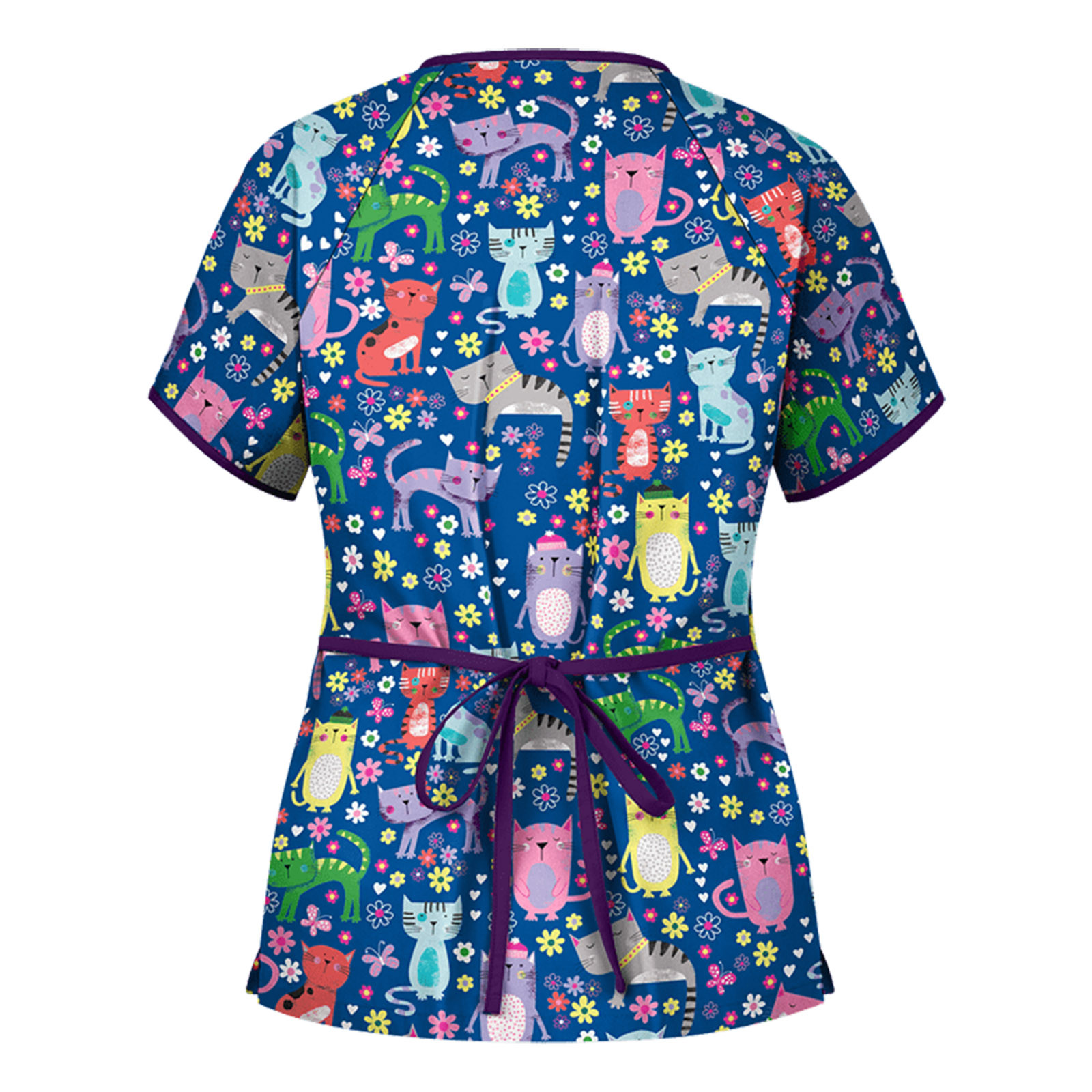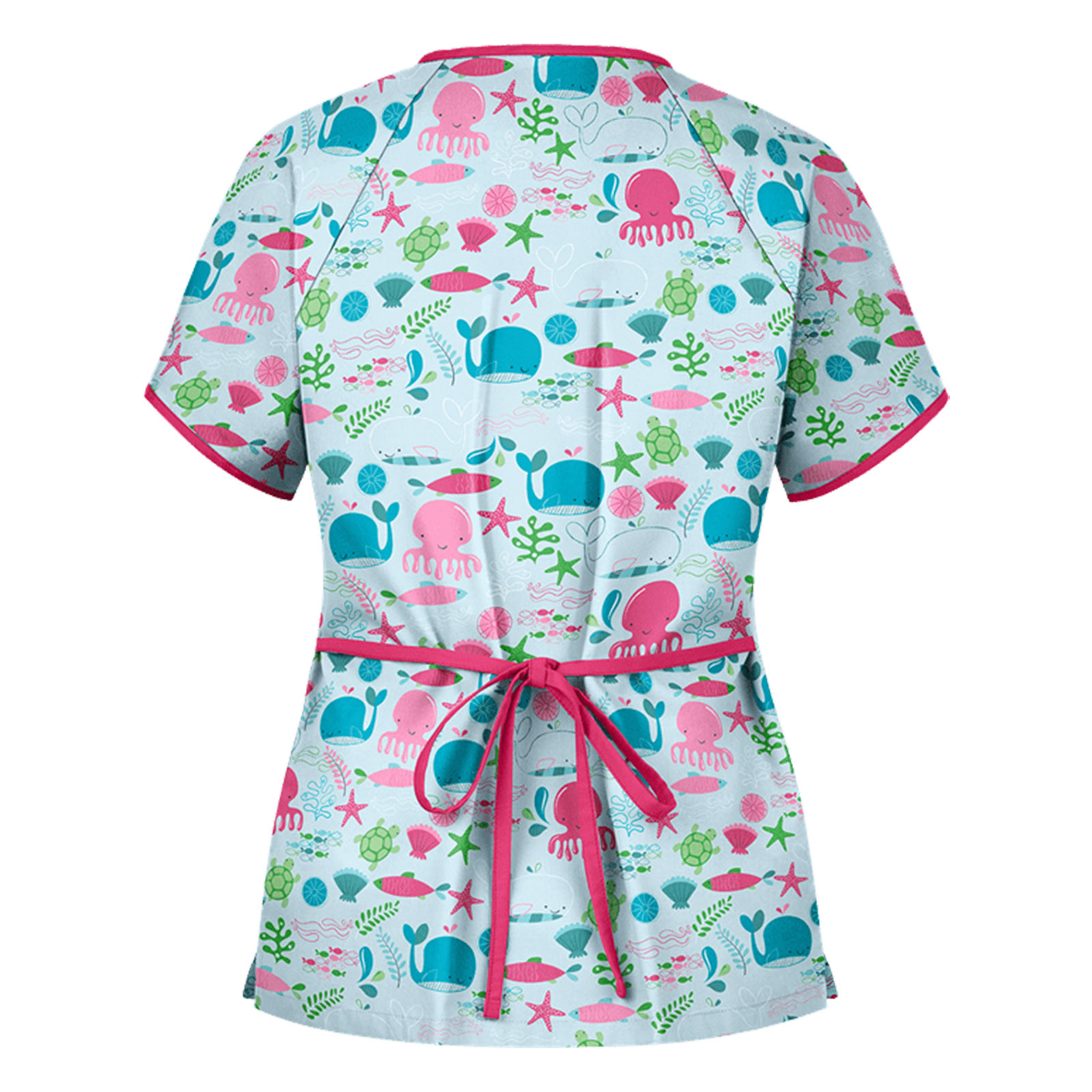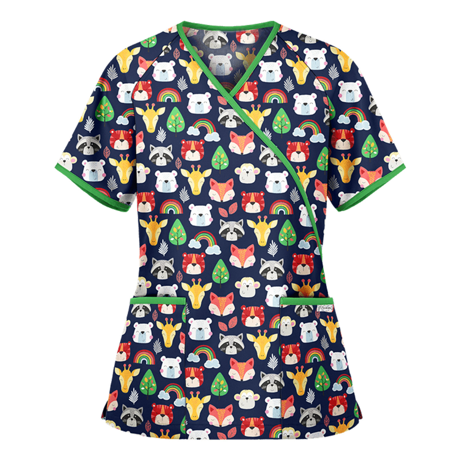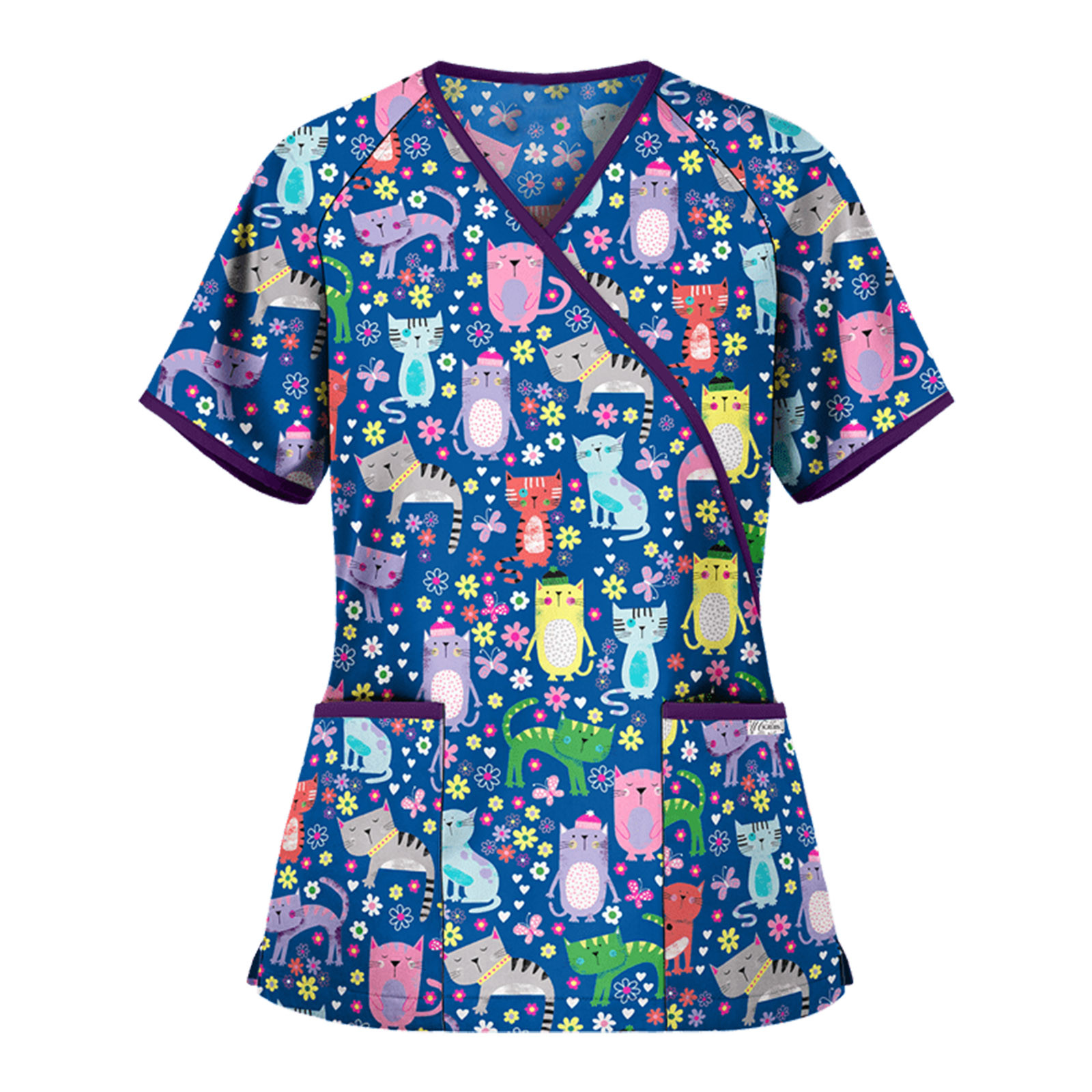 Женские топы с v-образным вырезом и коротким рукавом, рубашка с карманом, Рабочая Униформа, блузка