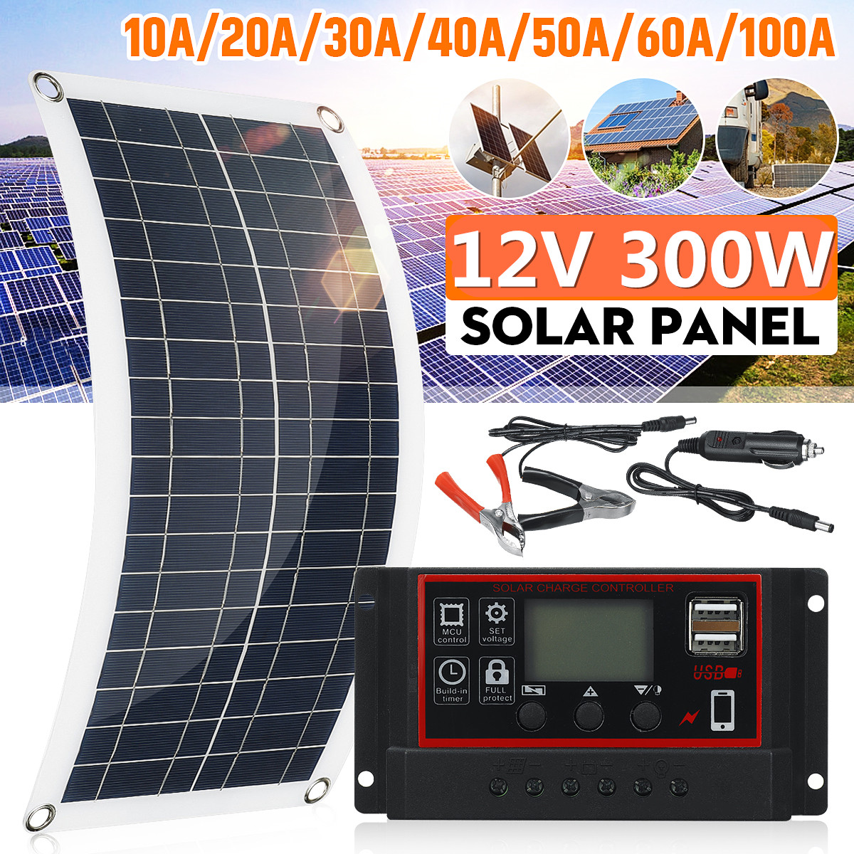 Название: 12 В 300 Вт портативная солнечная панель автомобиля Ван Лодка Караван Кемпер Трикл зарядное устройство