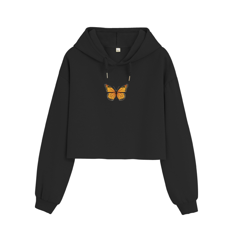 Винтажный укороченный топ с капюшоном, хлопковый пуловер, женские толстовки большого размера, женская укороченная толстовка с бабочками для девочек, корейская мода, уличная одежда