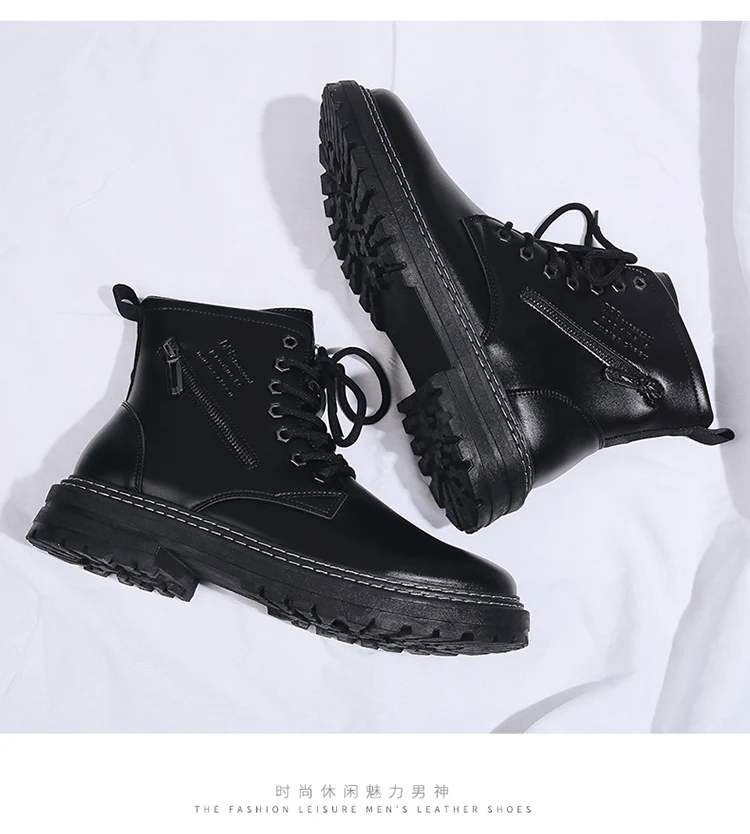Модные стильные мужские дизайнерские ботинки Martin из искусственной кожи на молнии; Сезон осень-зима; Обувь для работы; Аксессуары; Мужская повседневная обувь; Черные ботинки