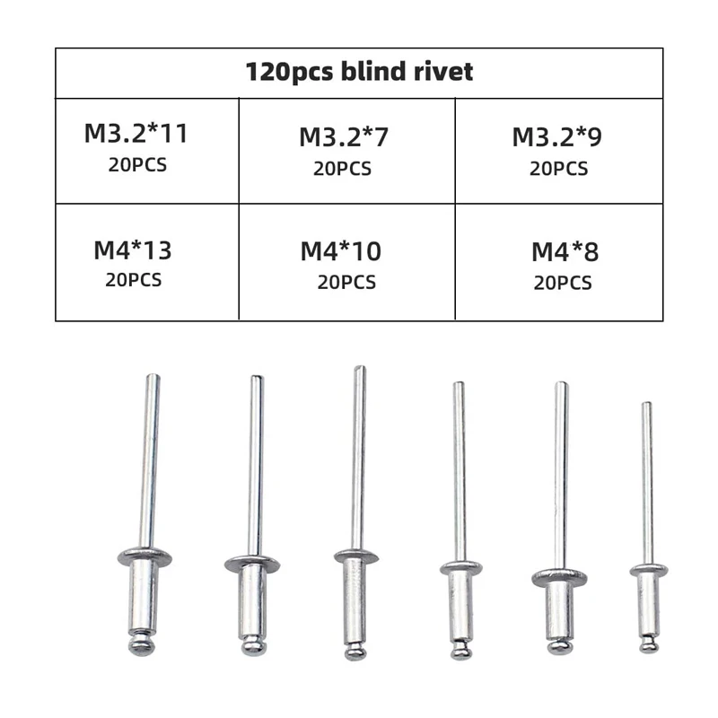 E. Комплект включает в себя: 3,2*7, 3,2*9, 3,2*11, 4,0*8, 4,0 * 10В RGBW, 4,0*13 Сталь купол слепые заклепки.