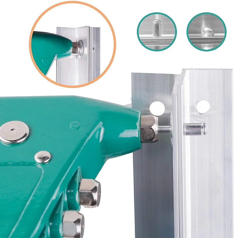 C. Размещение клепального устройства: Используйте насадку клепального устройства на оправе заклепок.