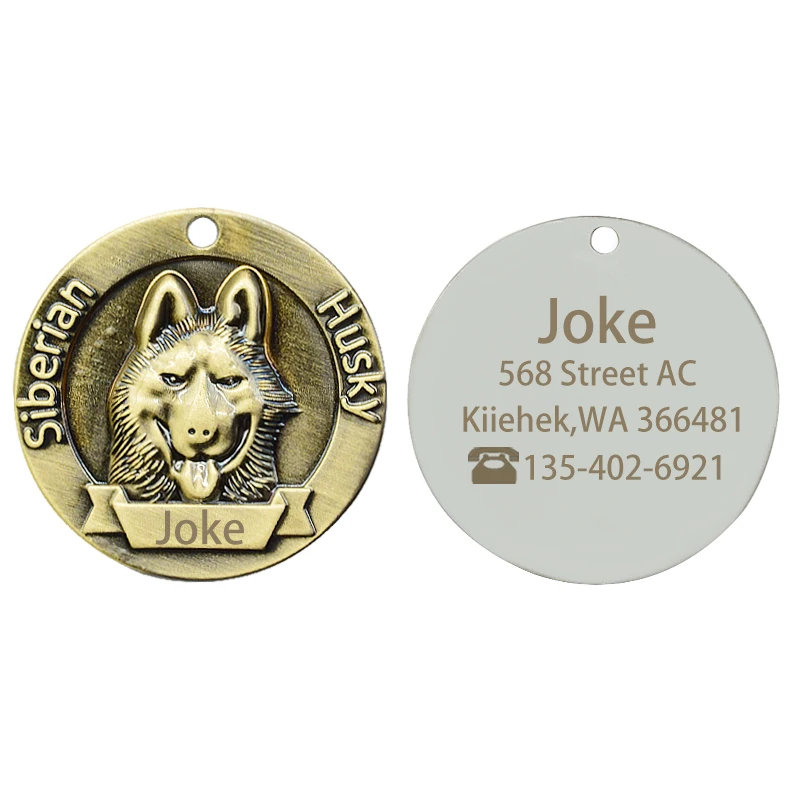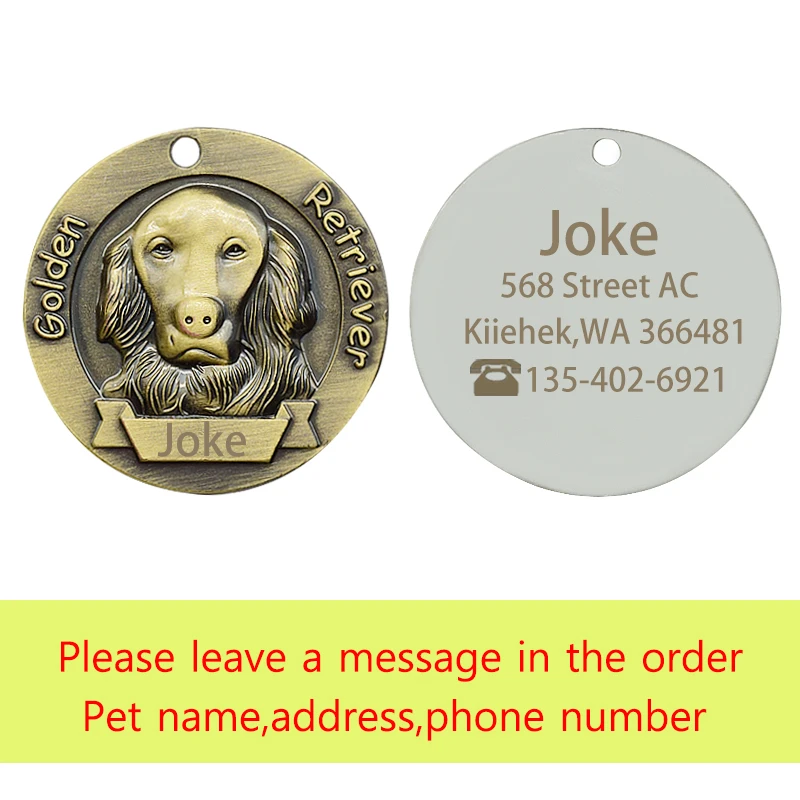 Персонализированные винтажные бронзовые тисненые бирки для собак на заказ Выгравированные бирки для собак Лабрадор для бульдога Чихуахуа бирки для ошейника для собак
