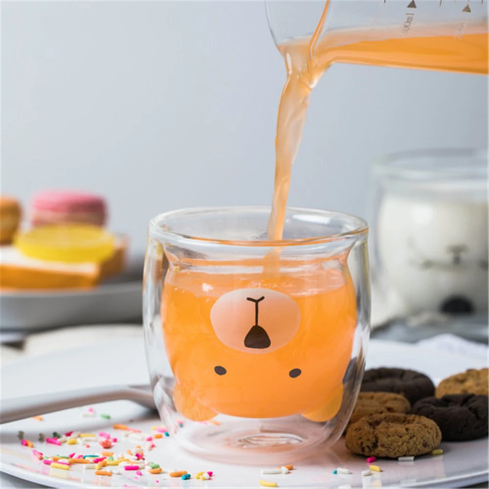 Стеклянные кружки, двухслойная стеклянная кружка, медведь, кошка, собака, животное, двухслойная стеклянная кружка, кофейная чашка, Рождественская кружка, милый чай, молочная чашка, рождественский подарок