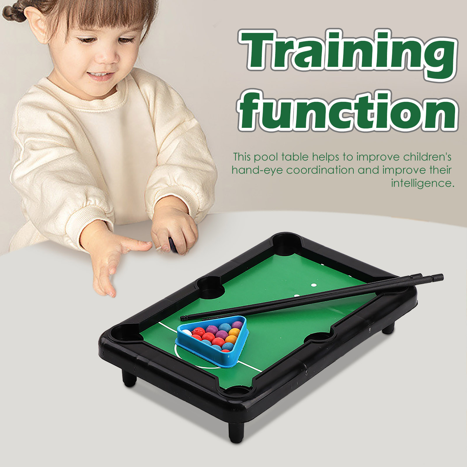 Высокая Таблица моделирования: Этот бильярдный стол разработан с высокой имитацией, легко Играйте и носите, практичная игрушка для развлечения. Безопасный материал: этот маленький бильярдный стол изготовлен из высококачественного материала, безопасная и гладкая поверхность без заусенцев, защищает детей от вреда. Функция обучения: Этот бильярдный стол помогает улучшить детские руки Координации, повышения их интеллекта. Игра для нескольких людей: эта игрушка подходит для игр нескольких людей, детей Свыше 3 лет его можно использовать. Гарантия: если вы не удовлетворены нашим продуктом, который вы получили, вы можете Отправьте нам электронное письмо в любое время. Мы ответим вам немедленно и поможем Решить вашу проблему.Характеристики: