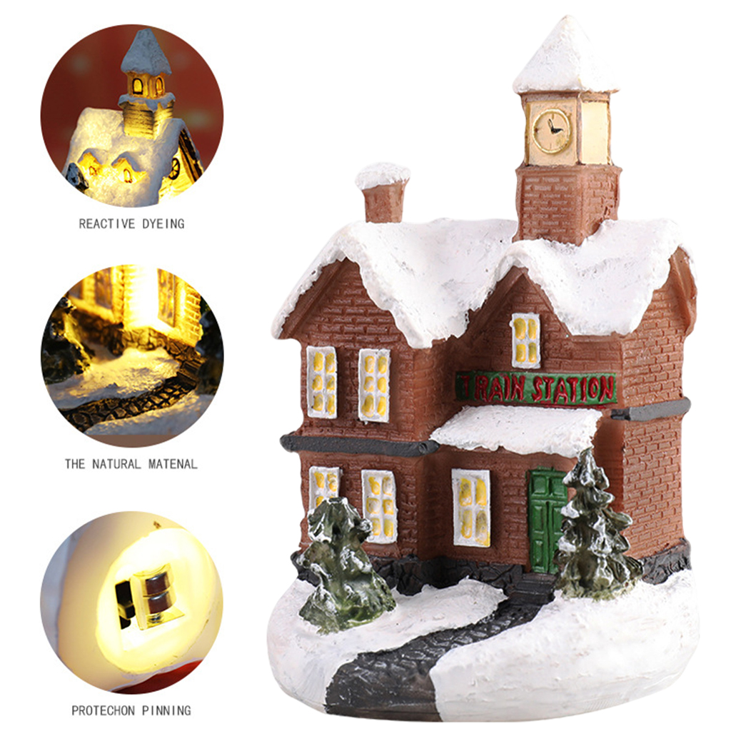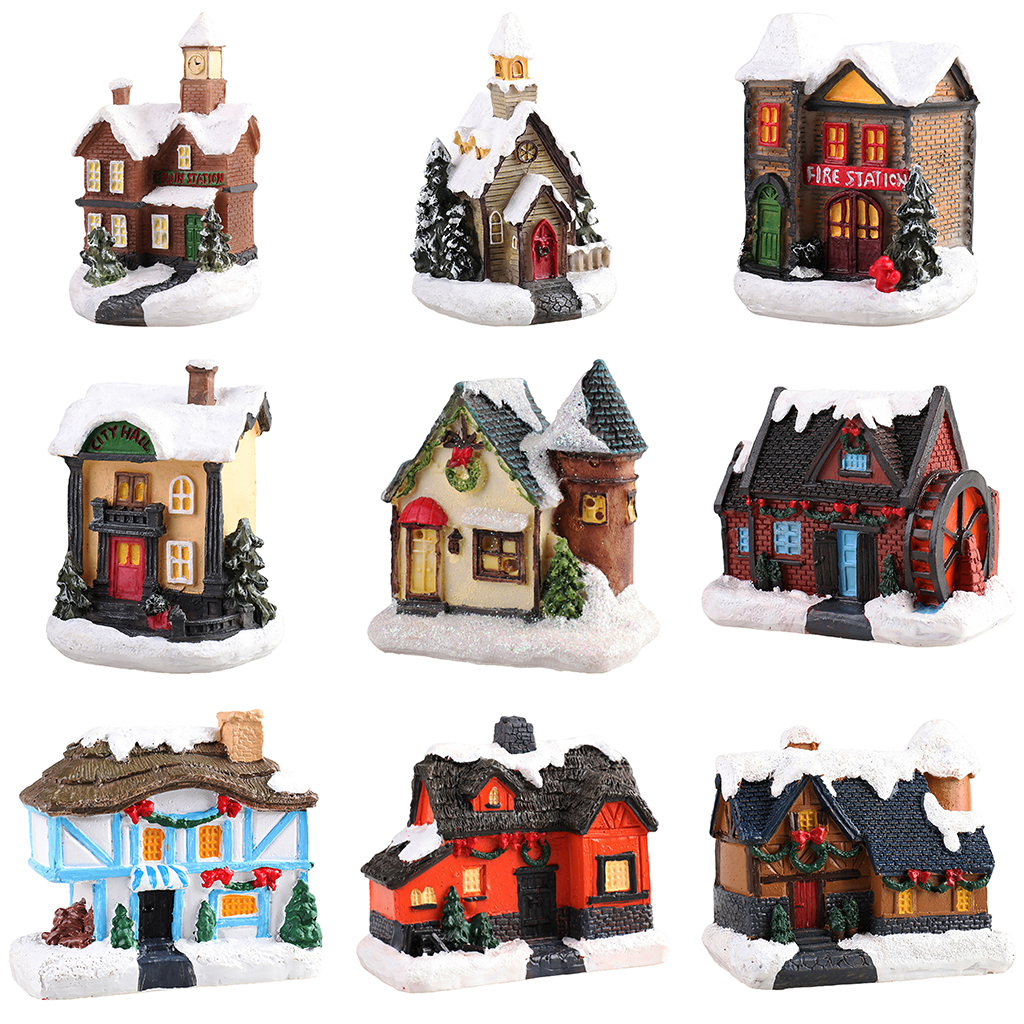 Смоляный мини Рождественский светодиодный домашний теплый светильник, миниатюрный деревенский кукольный домик, Декор для дома, Рождественский Настольный садовый декор, подарки