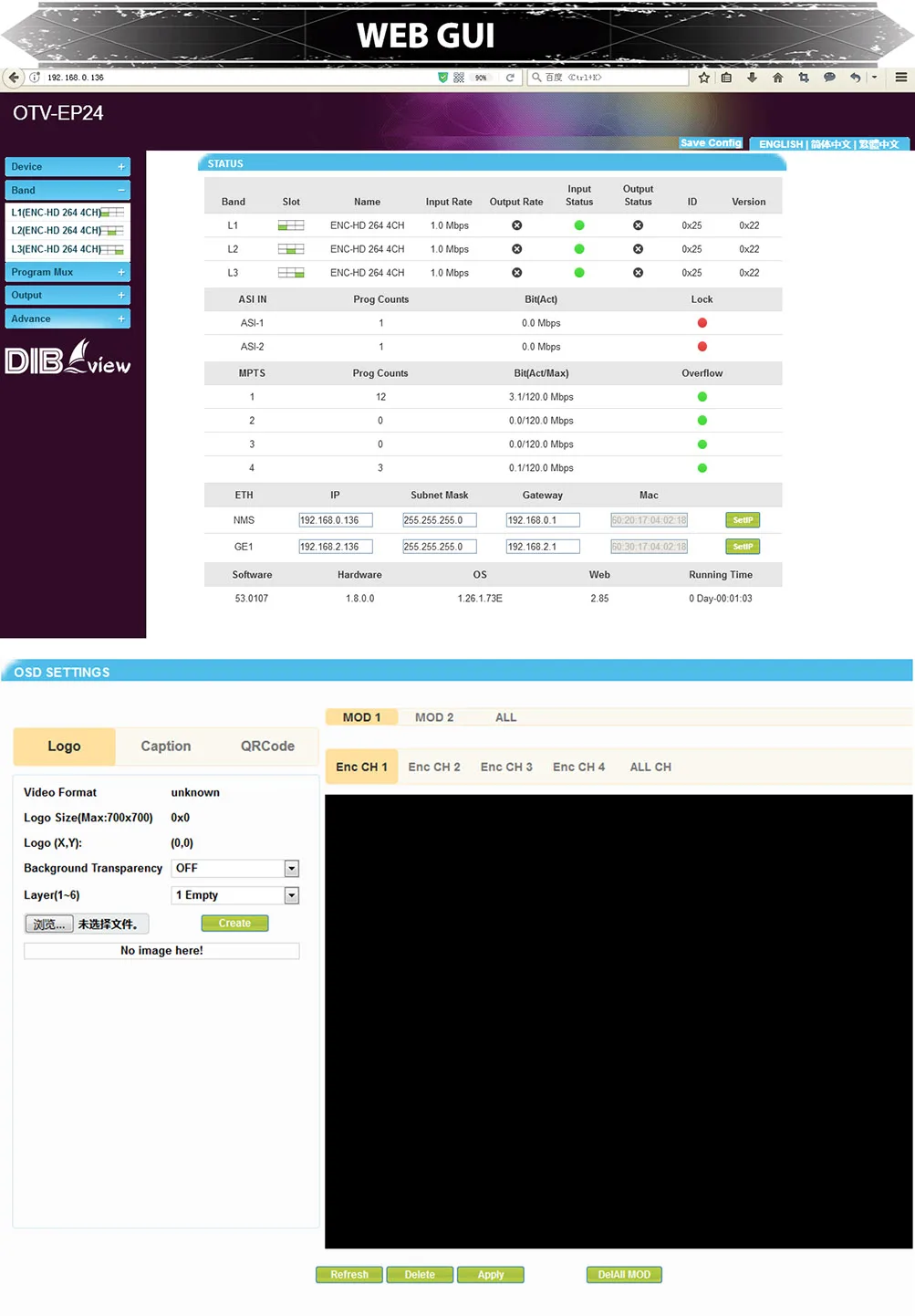 OTV-EP12 12 H.264 HDMI к IP кодировщик разработан специально для проекта распределения видео высокой плотности, который может поддерживать быстрое размещение. OTV-EP12 уже были выбраны известными компаниями не только потому, что наши высокоэффективные кодеры обеспечивают 100% бесперебойную работу и стабильность системы, но и потому, что они поставляются с расширенной поддержкой стабильной конфигурации, что крайне важно для всех приложений прямого вещания.