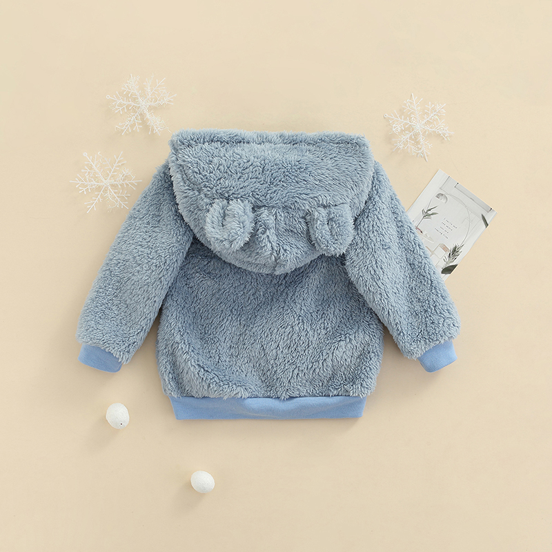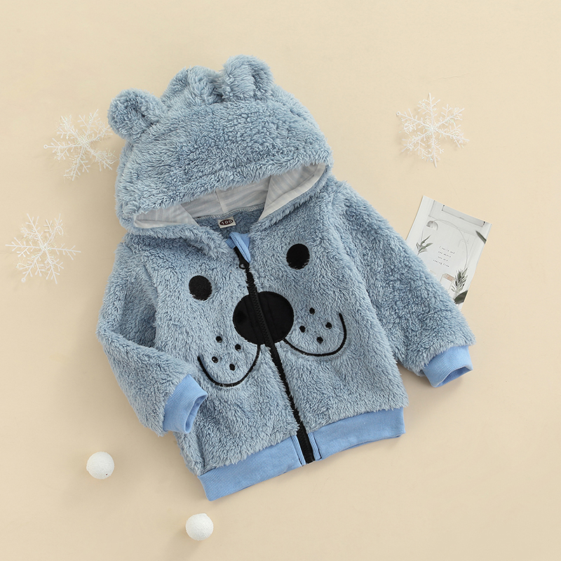 Детская зимняя флисовая куртка унисекс; Куртка-бомбер с длинными рукавами и капюшоном с рисунком медведя; Со скрытой молнией