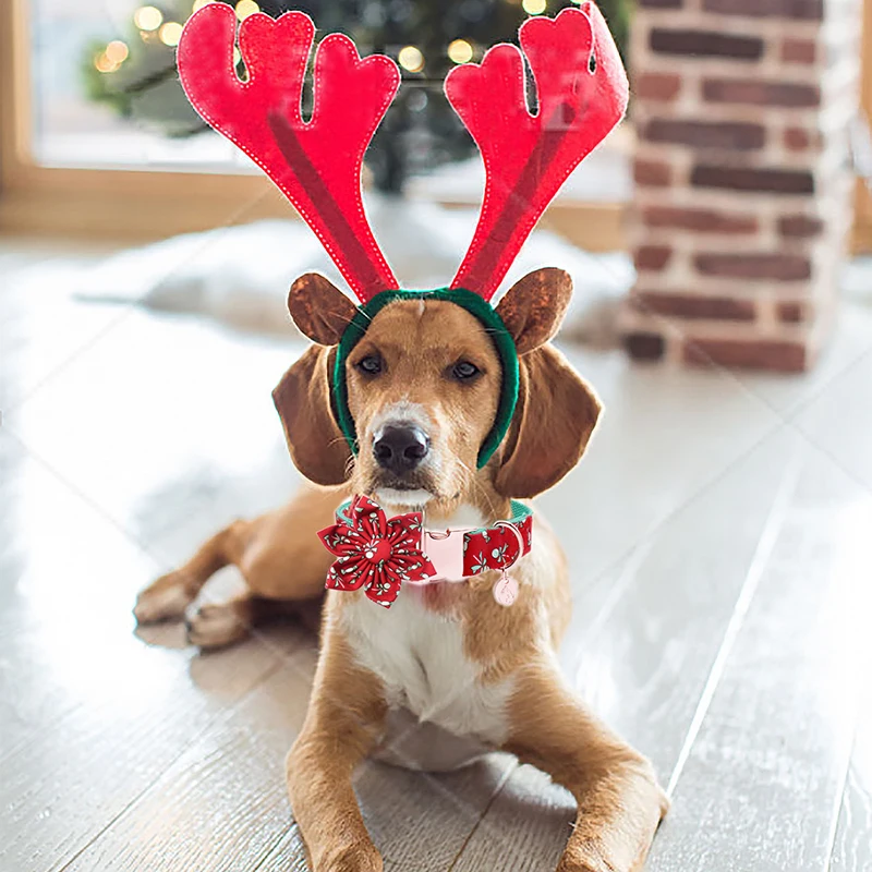 Уникальный стиль лапы Рождественский ошейник для собаки с цветком красные конфеты хлопок ошейник для питомца для больших для средних и мелких собак