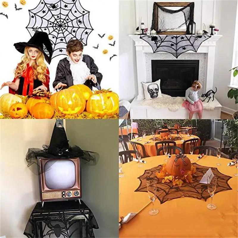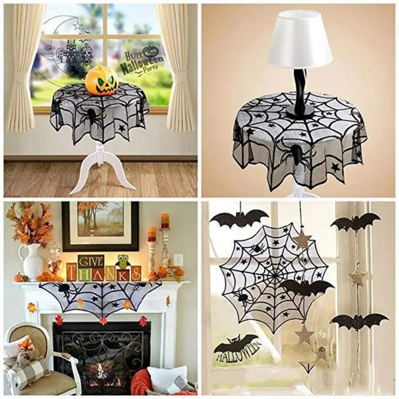 Круглый стол ткань Хэллоуин вечерние украшения кружева фон паутина черный Бегун Хэллоуин ужас реквизит Современная роскошь