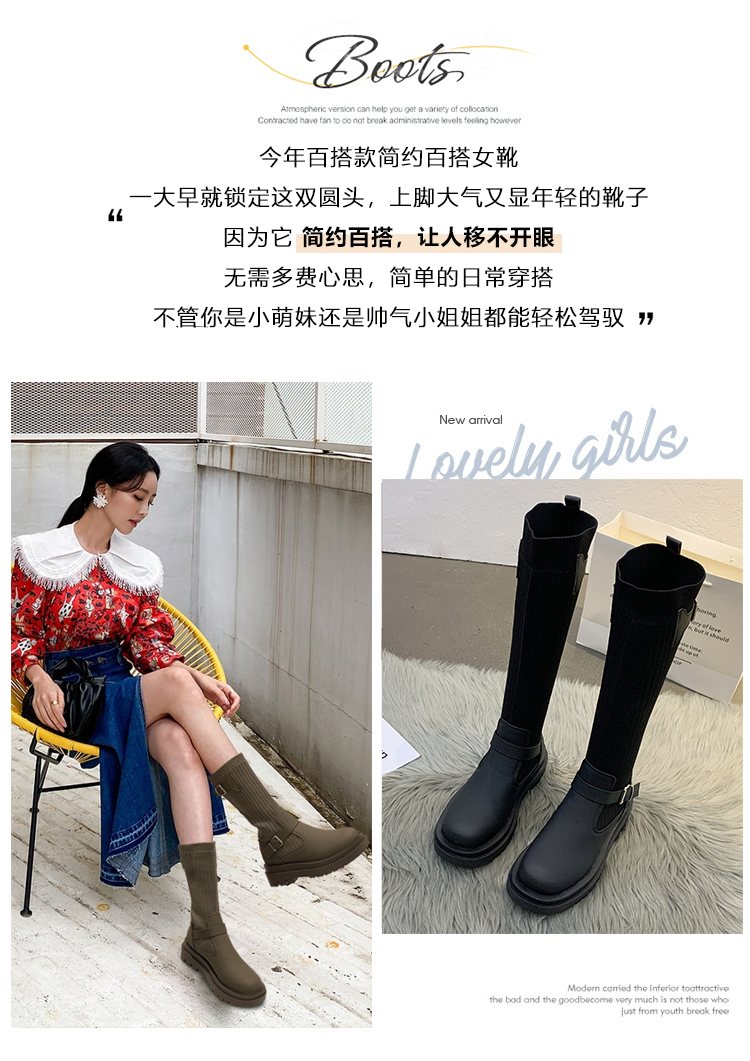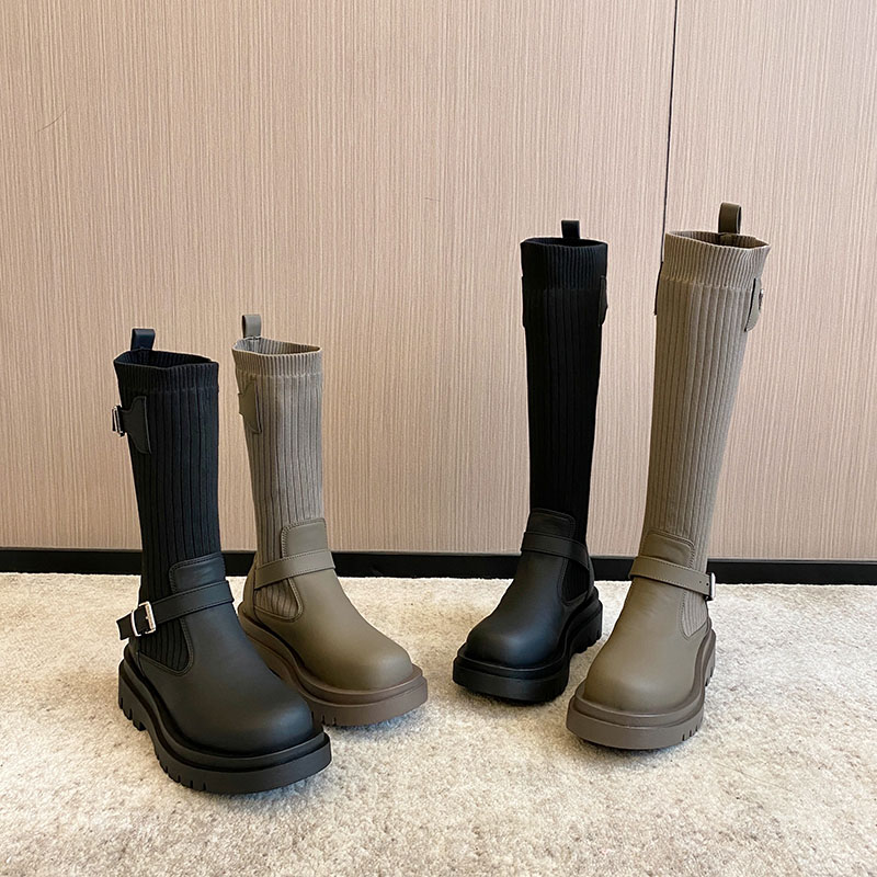 Высокие вязаные Стрейчевые сапоги с пряжкой на ремешке