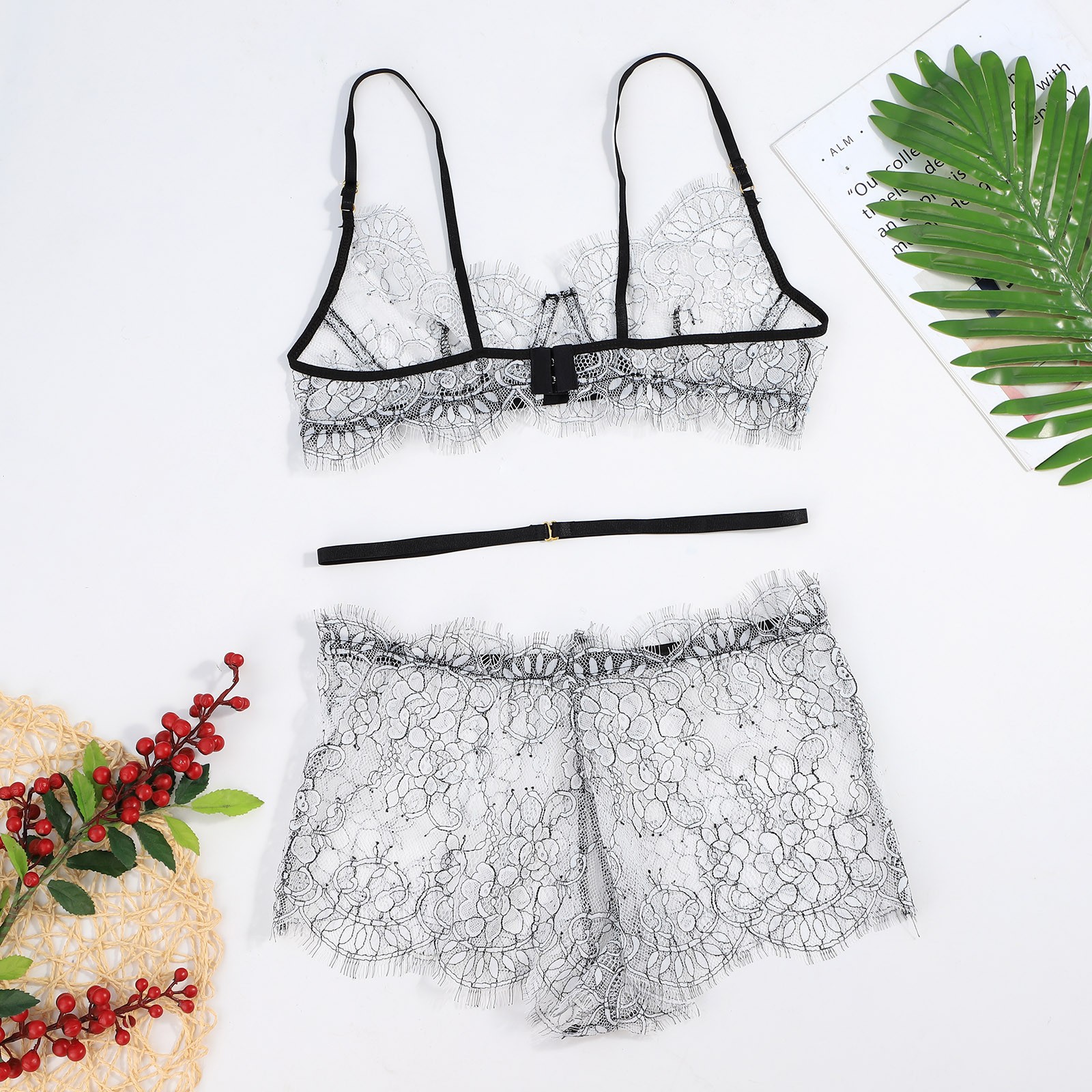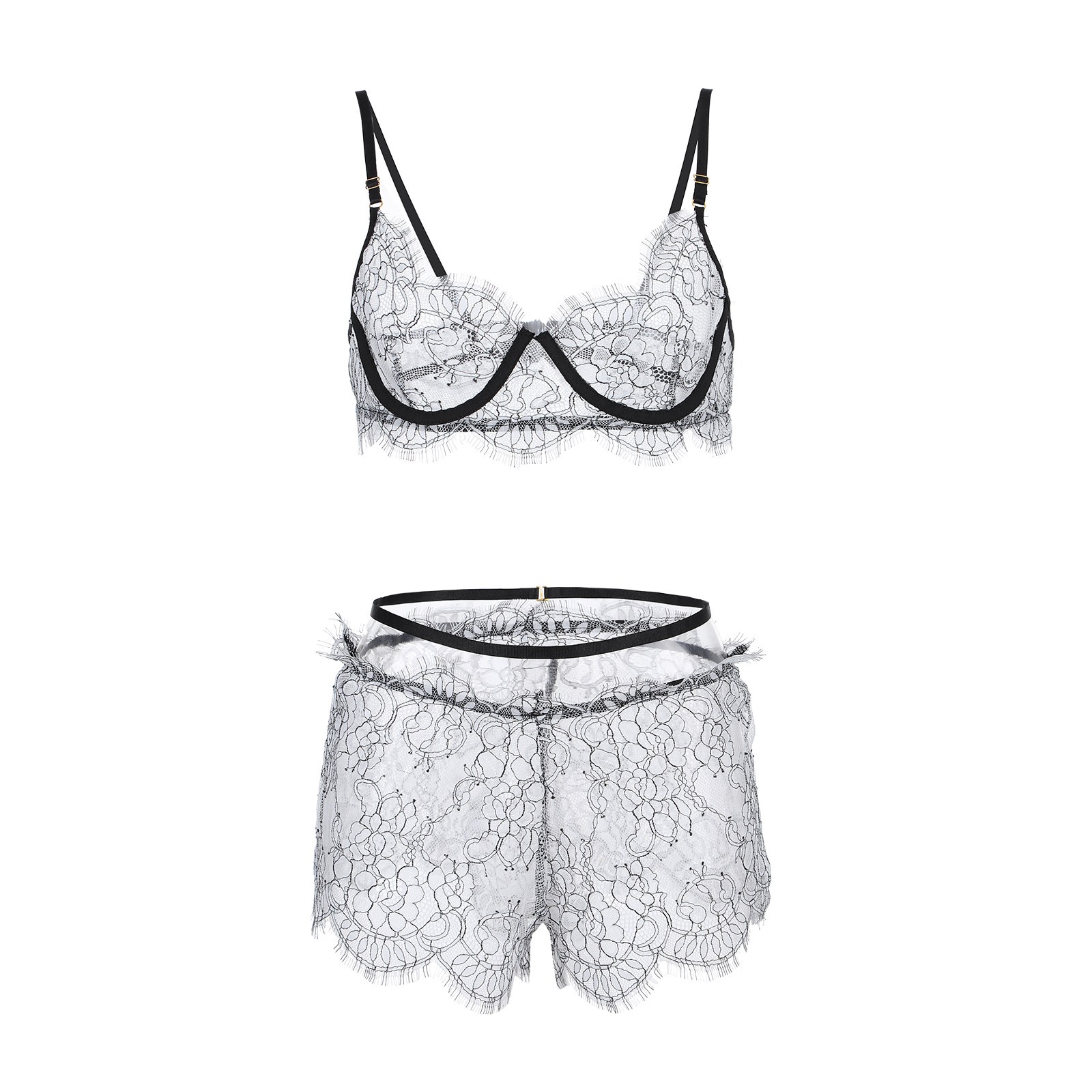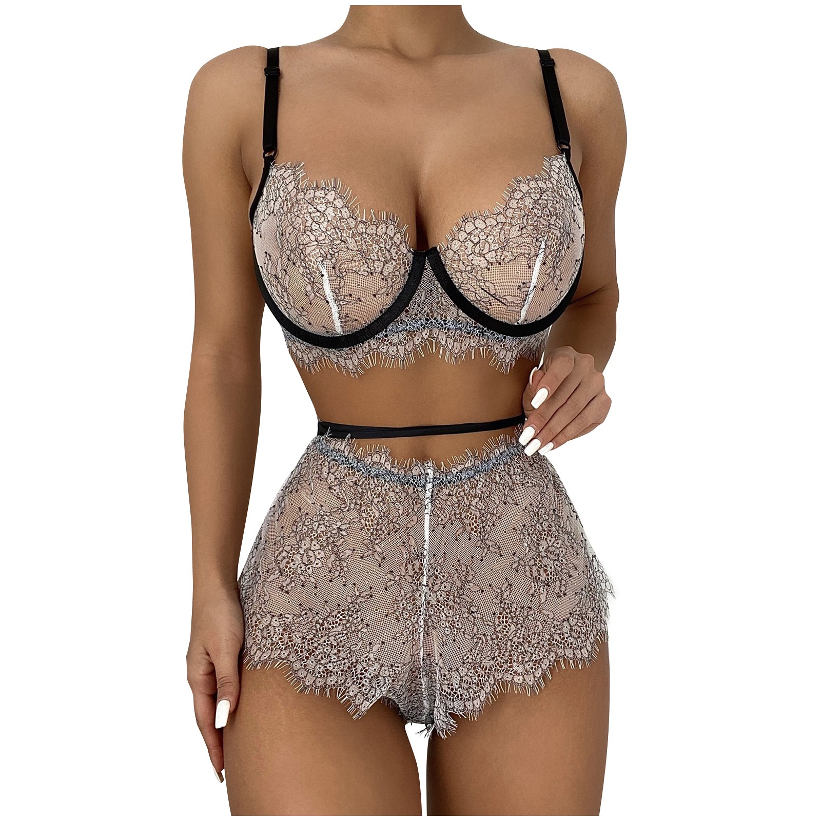 Для женщин нижнее белье с "ресничками" кружевное нижнее белье, одежда для сна, Стринги пижамы Топы для женщин