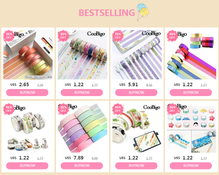 1. Васи лента 6 рулонов в коробке, 5 м длиной каждый рулон. Включает в себя: 2 рулона 2 см шириной; 2 рулона 1,5 см шириной; 2 рулона 1 см шириной.
