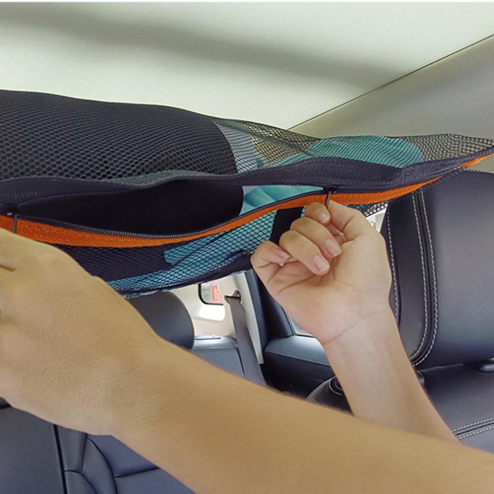 Net Bag Adjustable High Toughness Polyester Zipper Adjustable Drawstring Ceiling Net Pocket for Car