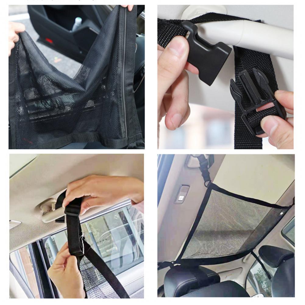 The large capacity ceiling net pocket can help you store clothes, toys, quilts, towel, and other irregularly shaped items, keeping your car from getting messy.