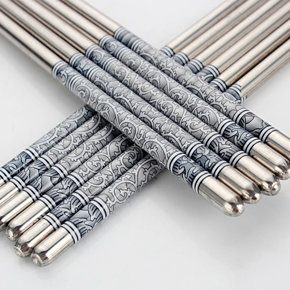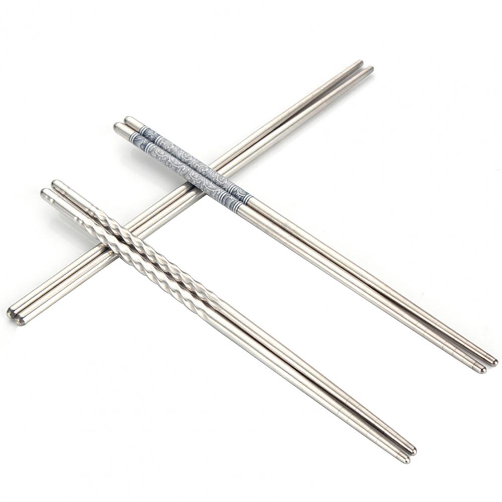 Палочки для еды изготовлены из высококачественной нержавеющей стали, Нескользящие и многоразовые.