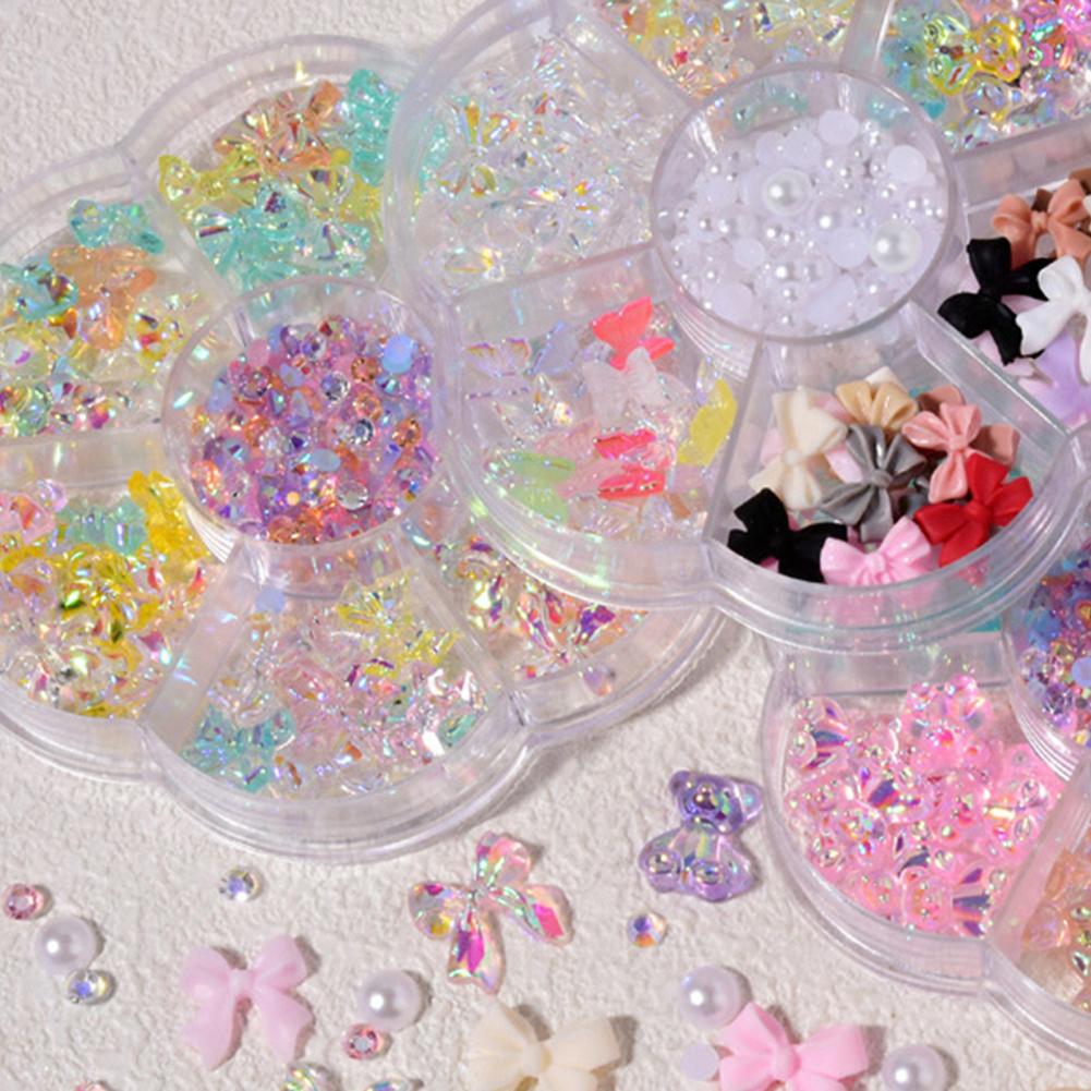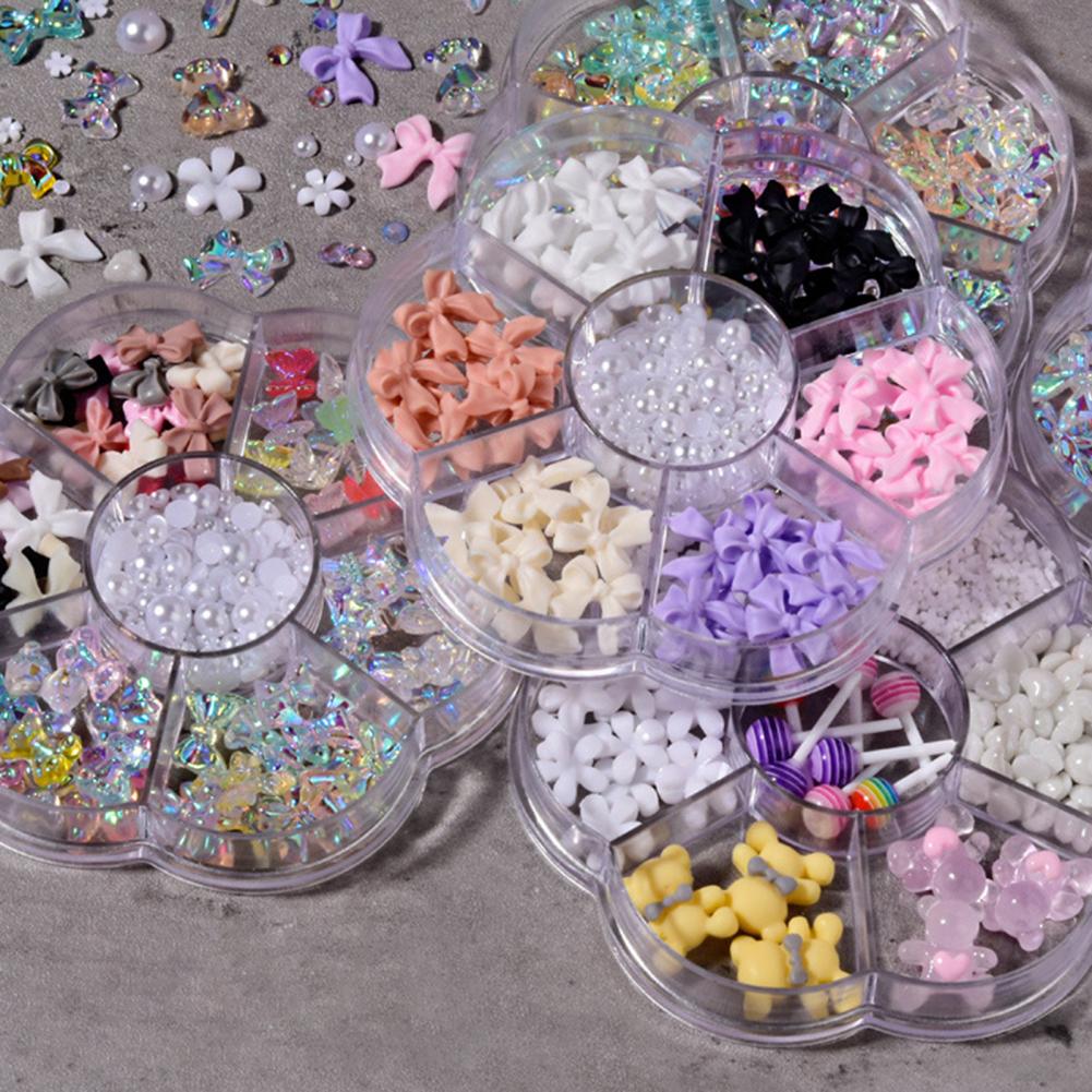 1 коробка, смешанный дизайн ногтей, бант, мишки, 3D искусственный жемчуг, сделай сам, поделки, креативный дизайн ногтей, стразы, ювелирные изделия для дизайна ногтей, аксессуары